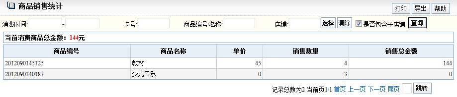 产品销售情况统计:
