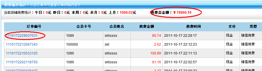 只统计储值消费的记录,点击单号可以查询该单的详细。