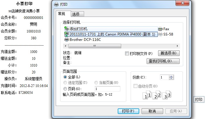 打印小票