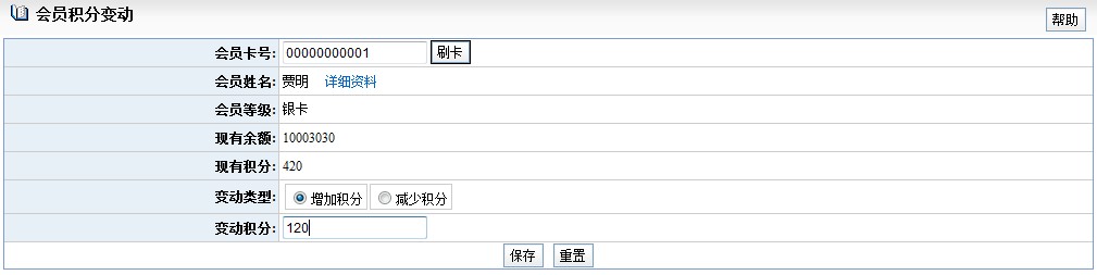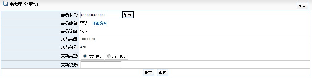 ,点击保存,则该会员的积分会发生相应变化