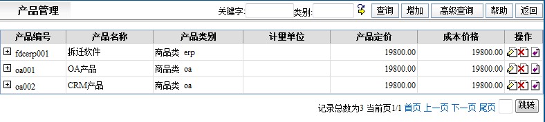 产品管理页面如下图: