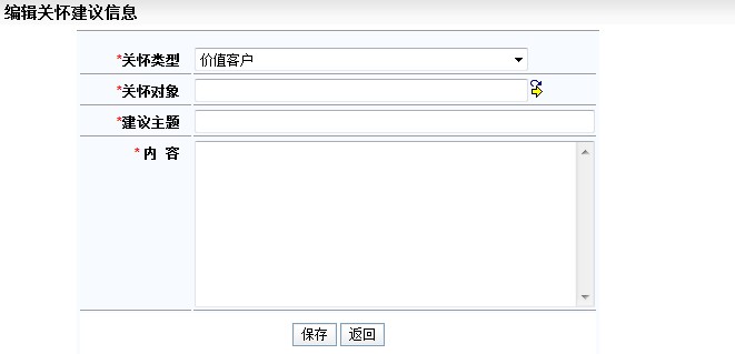 点击[选择人员]选择关怀对象。选择关怀类型、填写建议主题、内容 |