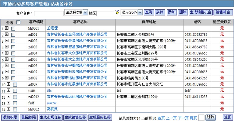 选中客户编号前的复选框,点击[生成销售任务]按钮,把参加该活动的客户转为销售任务