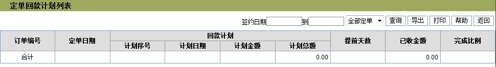制定回款计划可以通过按时间分批收回订单金额总数。确定每次计划回收的金额或者比例。回款计划的金额之和必须和订单金额一致。 回款计划页面如下图: