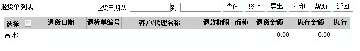 首先进入页面显示的是退货单列表。按退货日期查询退货单列表。 退货执行页面如下: