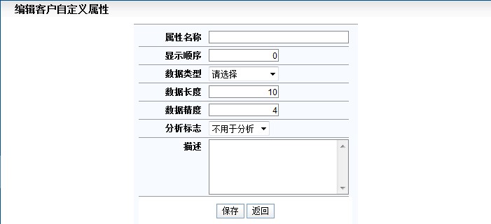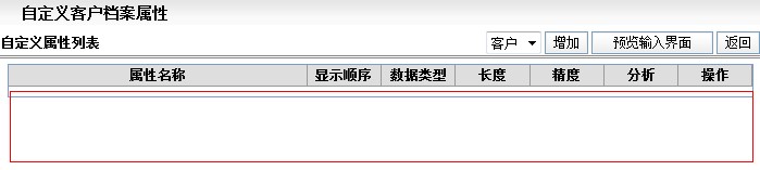 填写属性名称,选择数据类型,填写数据长度及其他信息,点击[保存]按钮,即可完成。 点击[预览输入界面]按钮,可以查看所有的客户字段属性(包括新增的属性)