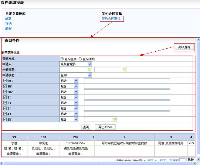 表单报表主要显示自定义模板库中类和类中的各个自定义模板在你申请时会自动生成一个表单来对自定义模板进行统计等。 表单报表查询使用方法:用户增加查询方式、申请人、申请日期、申请状态等对表单进行筛选查询,在需要情况下可以点击导出excel来查看。