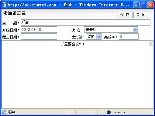 b) 输入任务详细信息,单击“保存”按钮保存数据。