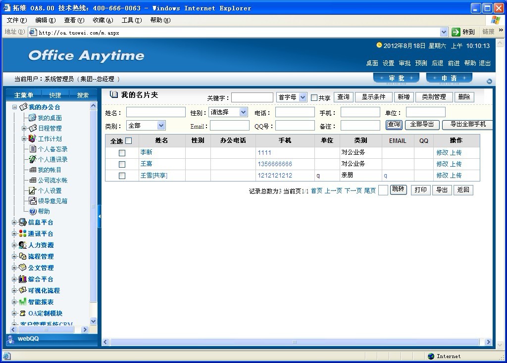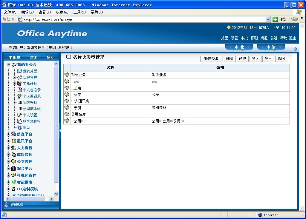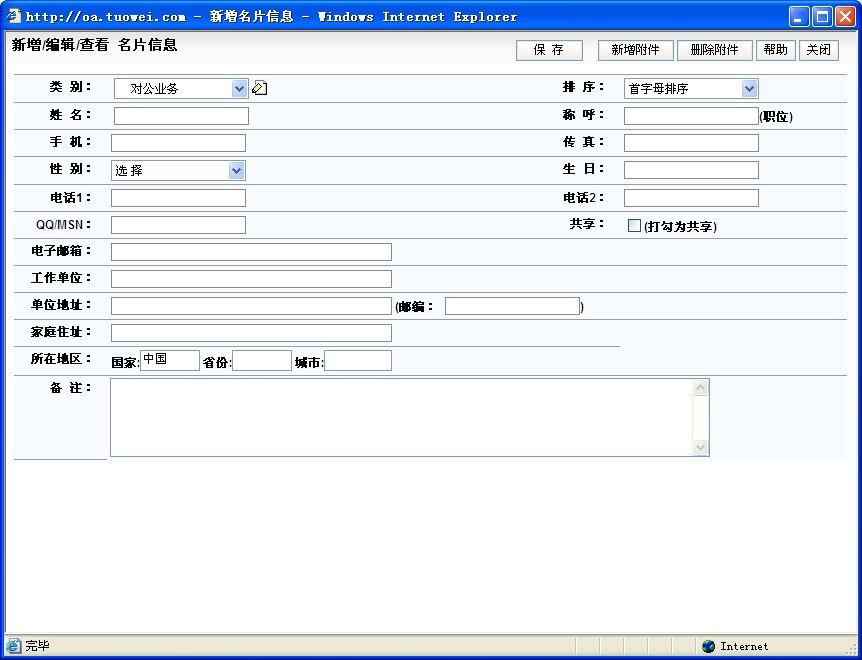 个人通讯录是将员工个人名片信息分类进行管理,使员工能够很方便地查找到所需要的有关人员信息。