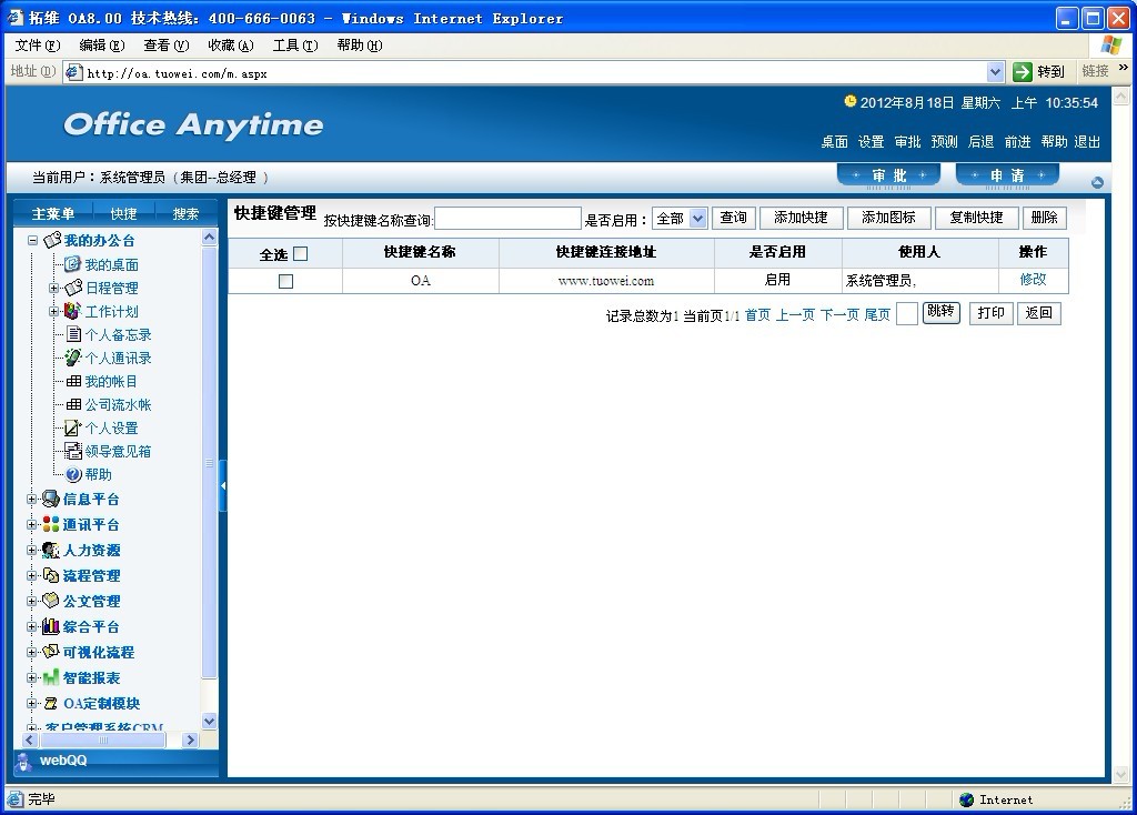 添加快捷链接。