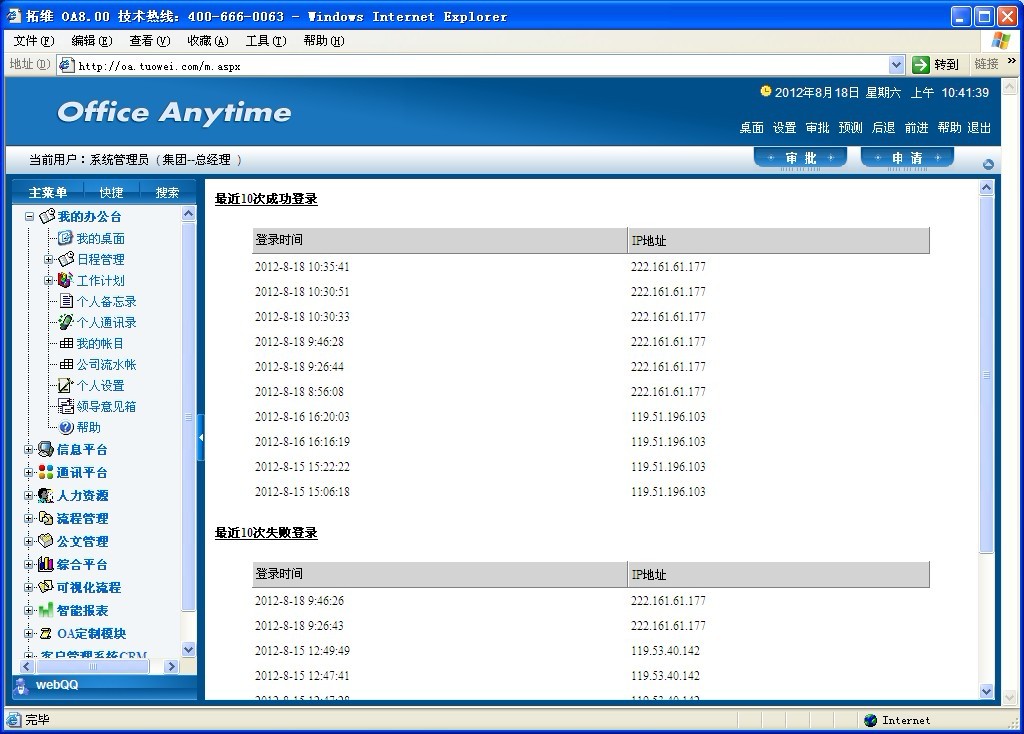 查看最近10次成功登陆和登陆失败记录。