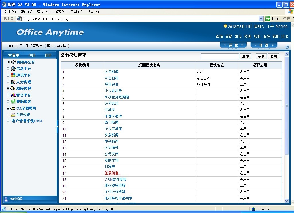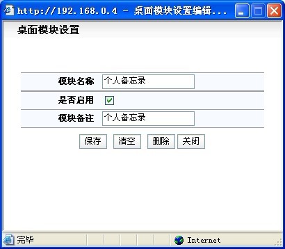 进入桌面模块管理界面后点击如图红框部分对桌面中的模块进行属性设置属性设置 包括:启用状态、不启用状态.
