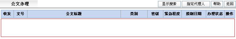 点击[查询]按钮可按指定的查询条件(收发文、公文文号、公文标题、主题词、公文类别、密级、紧急程度)显示与当前操作员相关的公文。