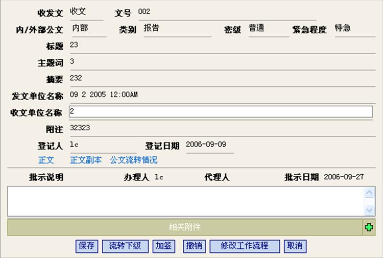 1.如果有正文编辑权限,则点击[正文]链接可编辑修改正文内容,否则只能查看正文内容。