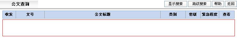 使用此功能,可以通过设置相应的查询条件,查询显示公文信息。 进入公文查询页面,系统默认显示拟制日期或登记日期为最近一个月且当前操作员的权限符合公文密级的许可范围的公文列表。密级权限规定为高级时自动含有低级的密级权限。