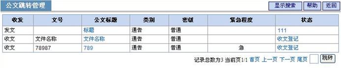 进入公文跳转主页面后,首先显示所有未办理完成的公文列表。