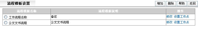 使用本功能,针对本单位的常用公文流转处理程序,建立工作流程模版,工作点、工作流及其属性。