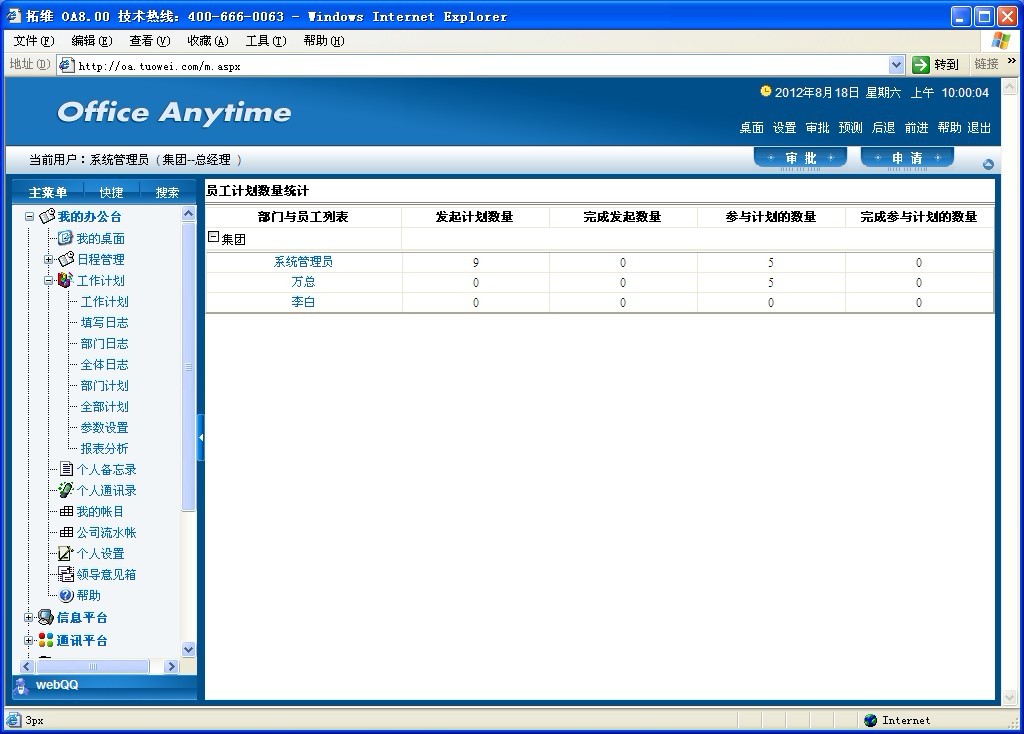 此功能统计每一个员工的计划数量,包括发起计划数、完成发起计划数、参与计划数、完成参与计划数。