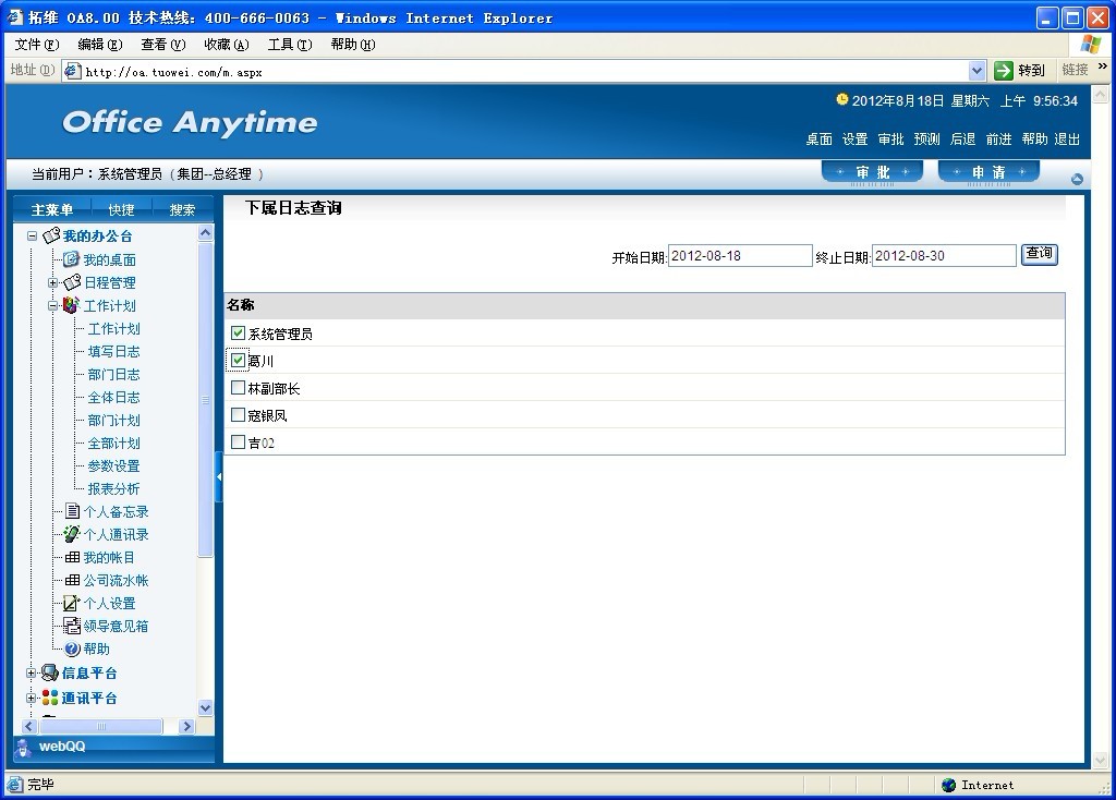 1.此功能有助于领导更好的对员工,每天工作情况进行管理,同时使管理者更好的对员工进行工作安排。 2.点击查询前要先填写日期、勾选对应的员工,然后再点击查询按钮。