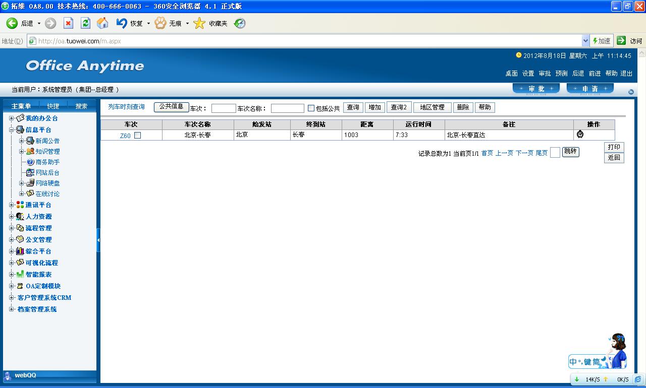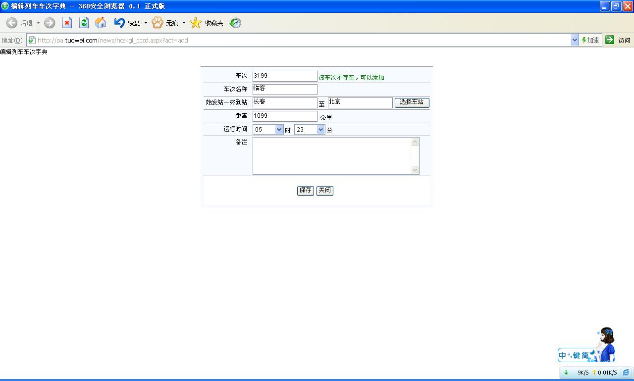 增加车次。单击“增加”。弹出窗口,输入相应的内容;点击保存既可