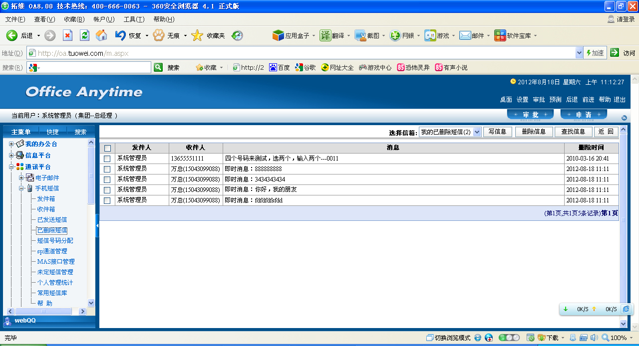 此界面可以轻松查看所有自己已经删除的所有短信。