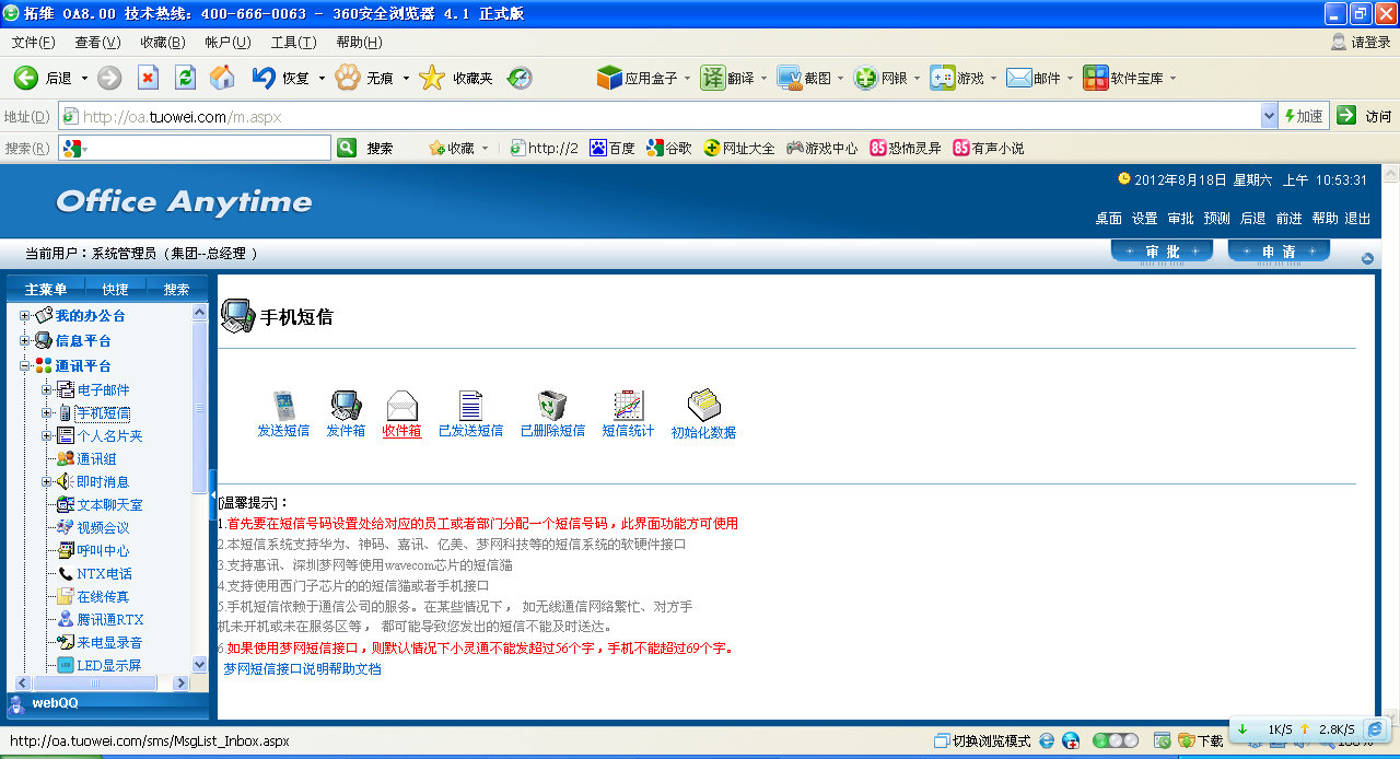 个人与部门的内部短信号码设置