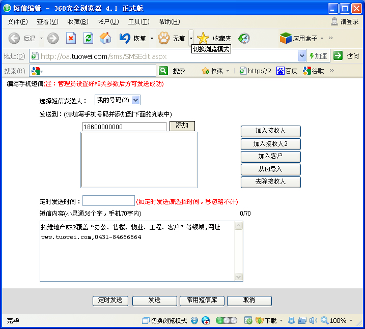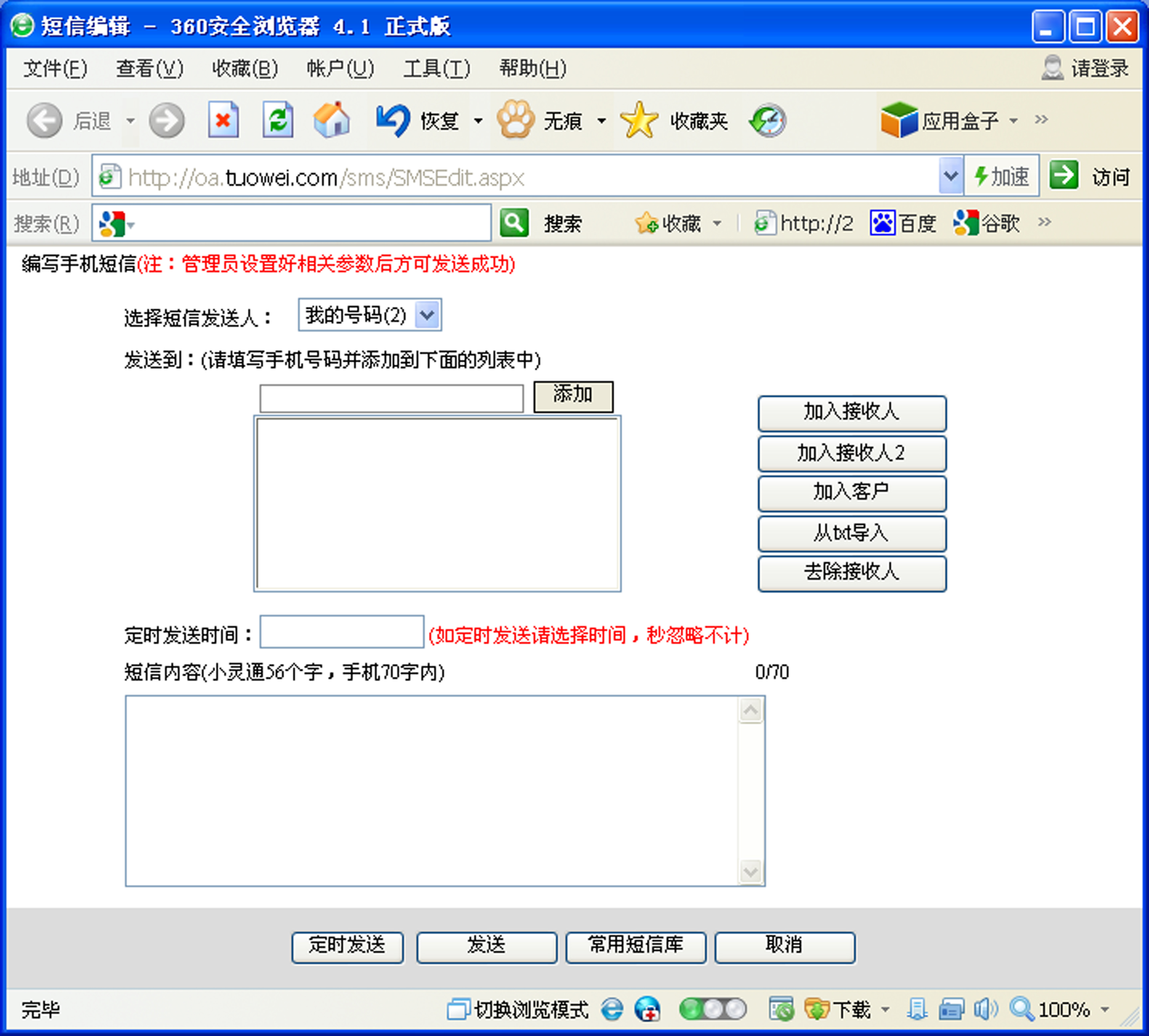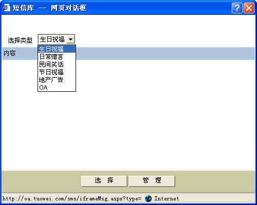 “常用短信库”里是一些已经写好的短信,单击“常用短信库”,可选择类型,选择相应信息如图所示:。