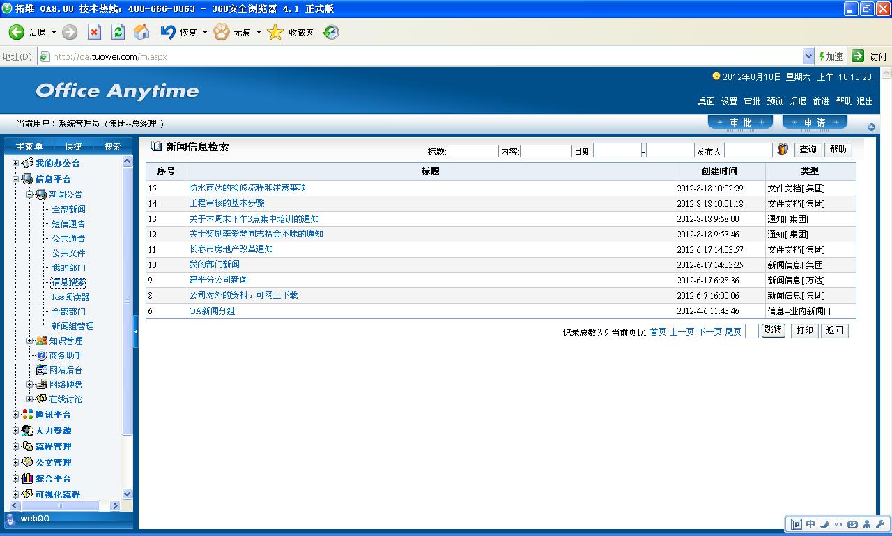信息搜索能检索全部新闻公告等信息。
