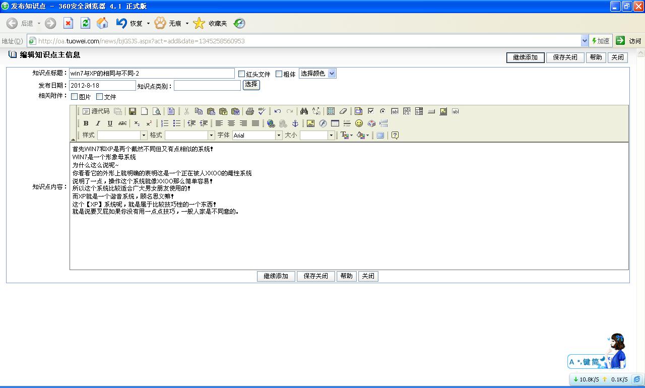 添加知识点主信息,单击上图中的“添加”按钮,跳转到下图界面: