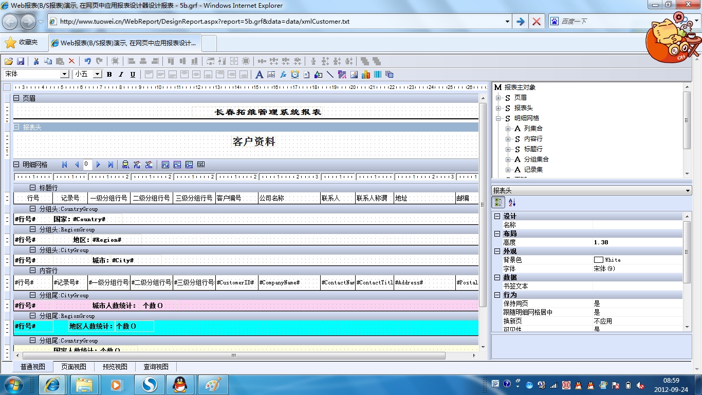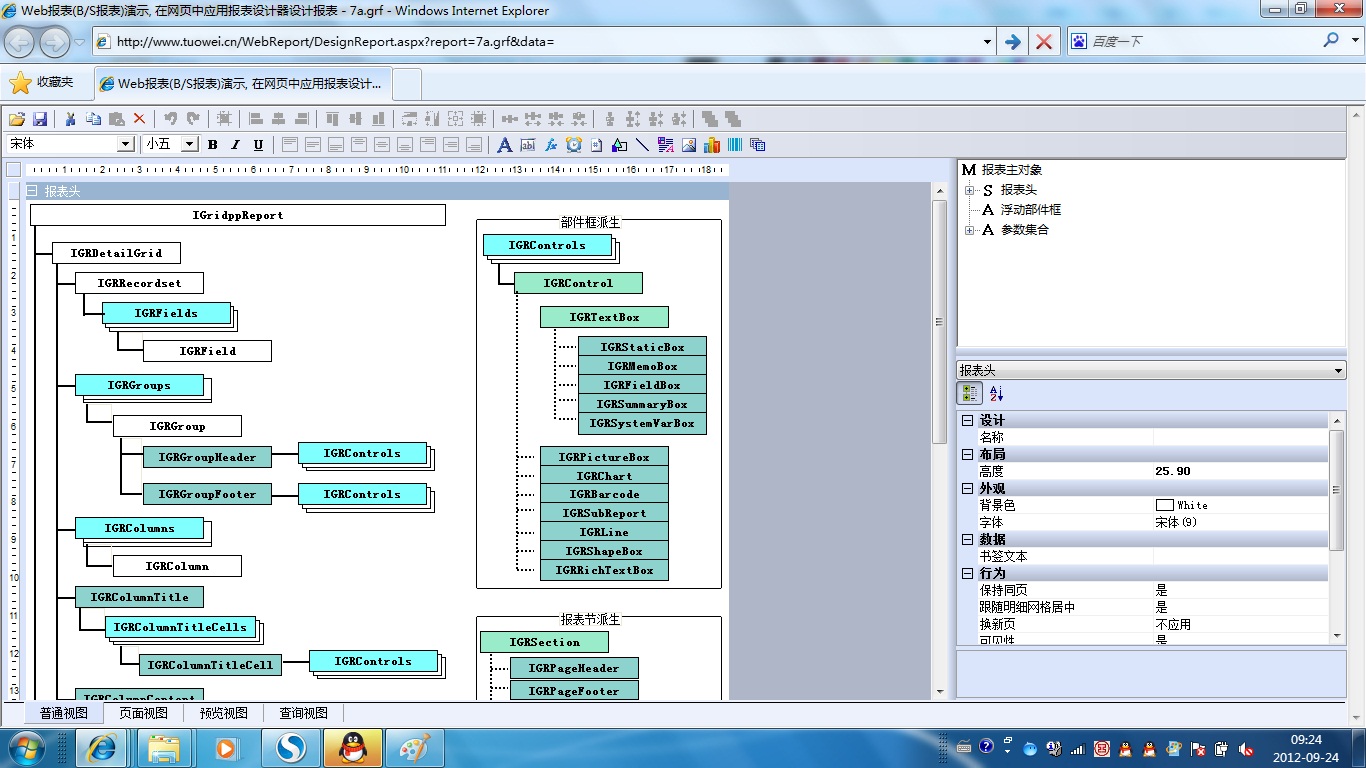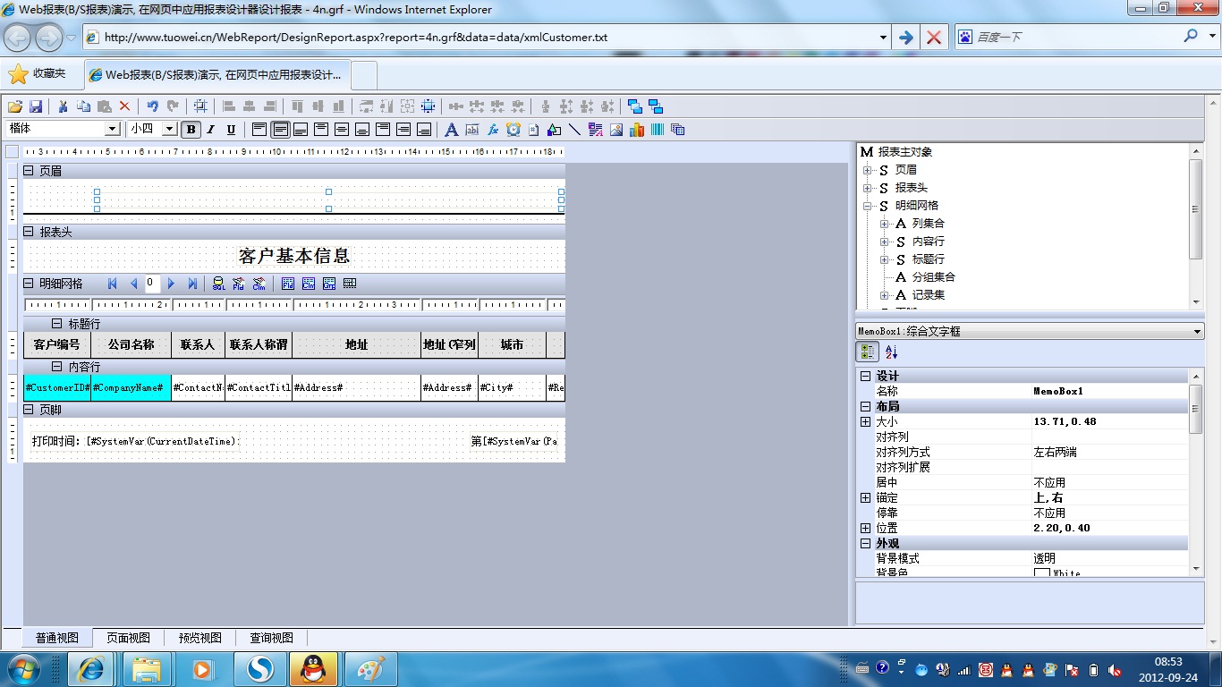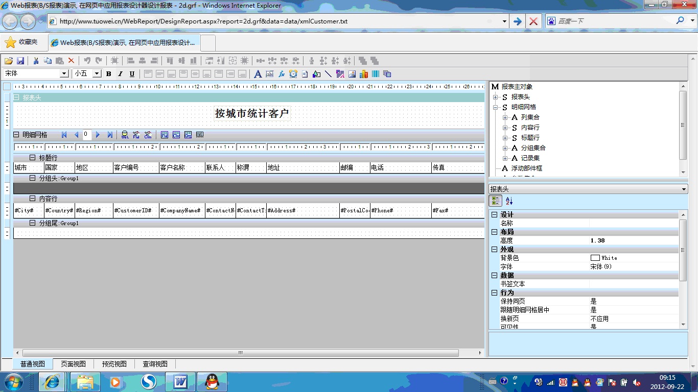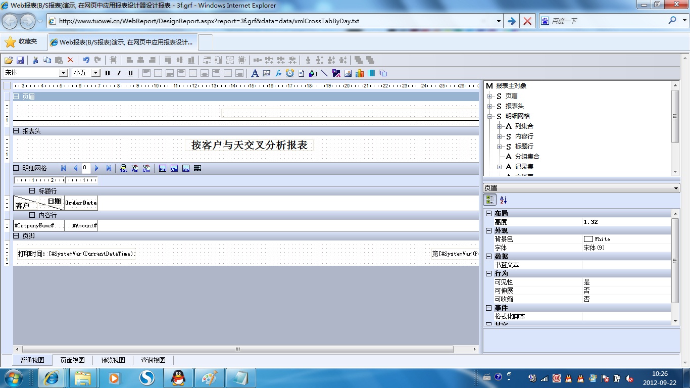 初次访问会自动下载安装报表插件,需要等待几分钟。始终不能看到演示报表,请看关于 IE 安全设置。