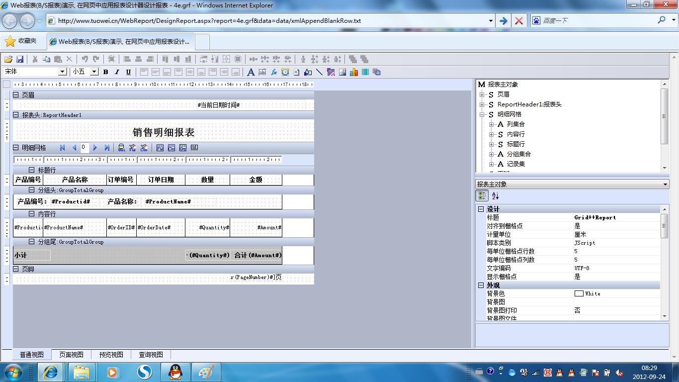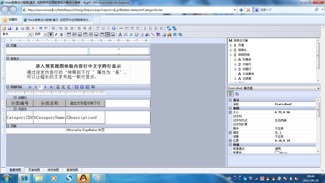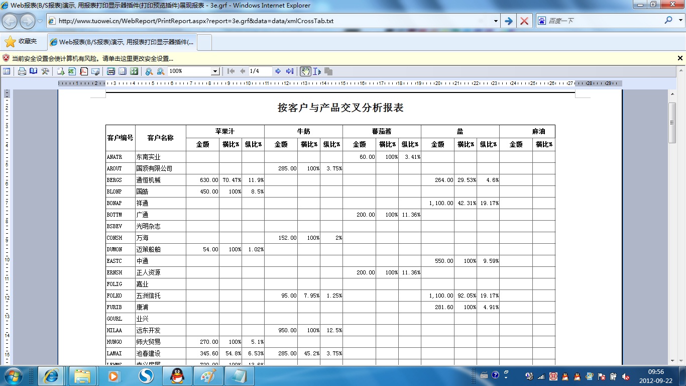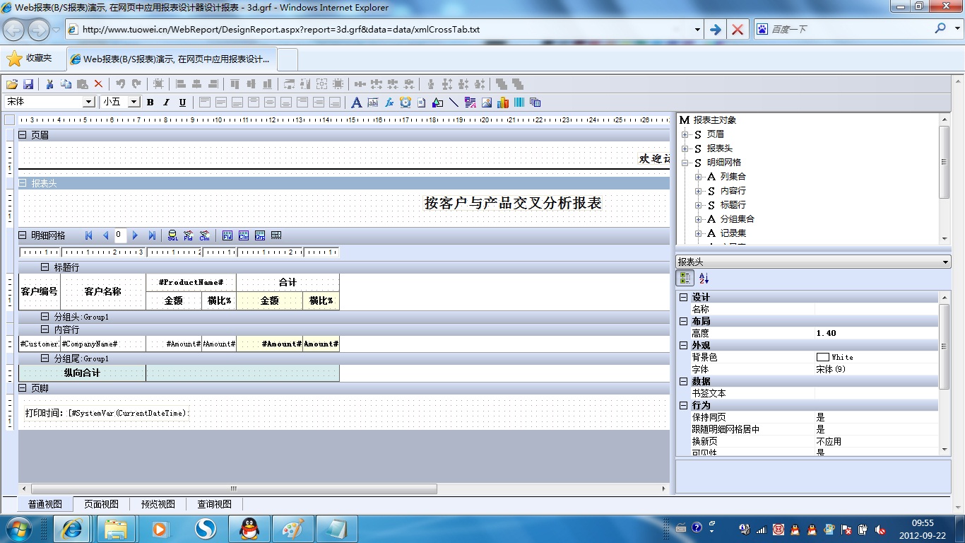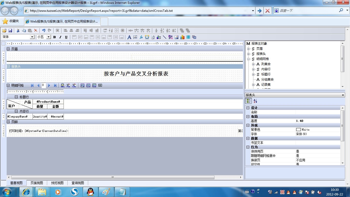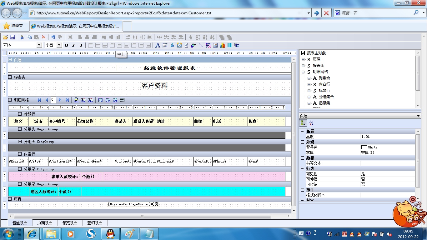 初次访问会自动下载安装报表插件,需要等待几分钟。始终不能看到演示报表,请看关于 IE 安全设置。