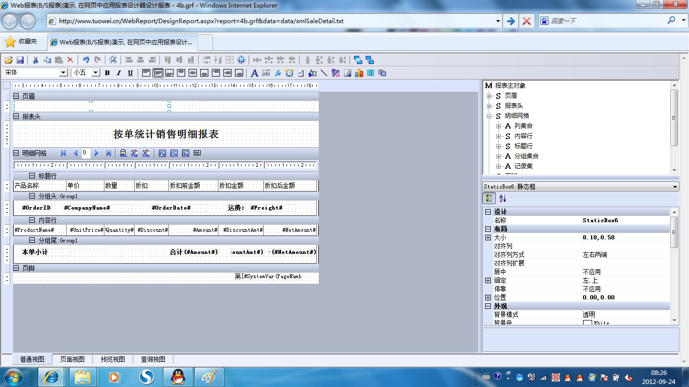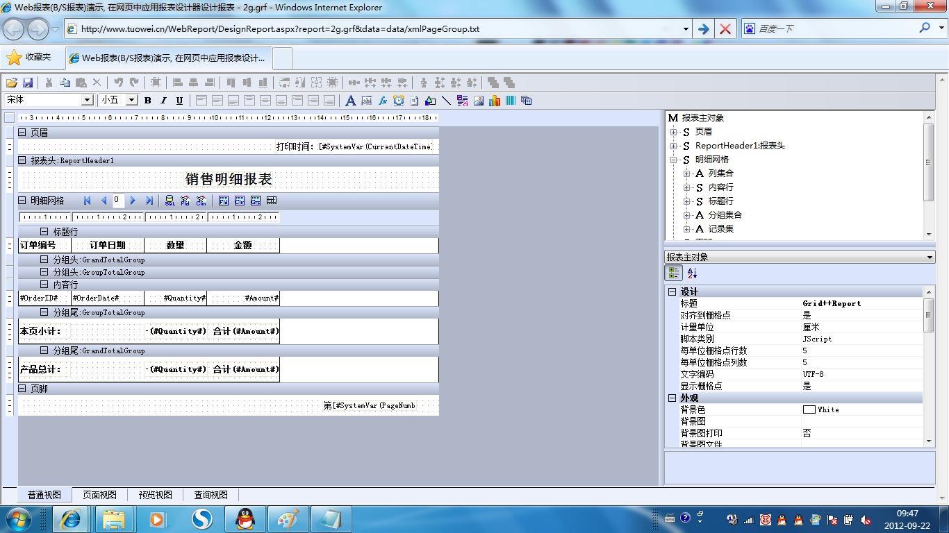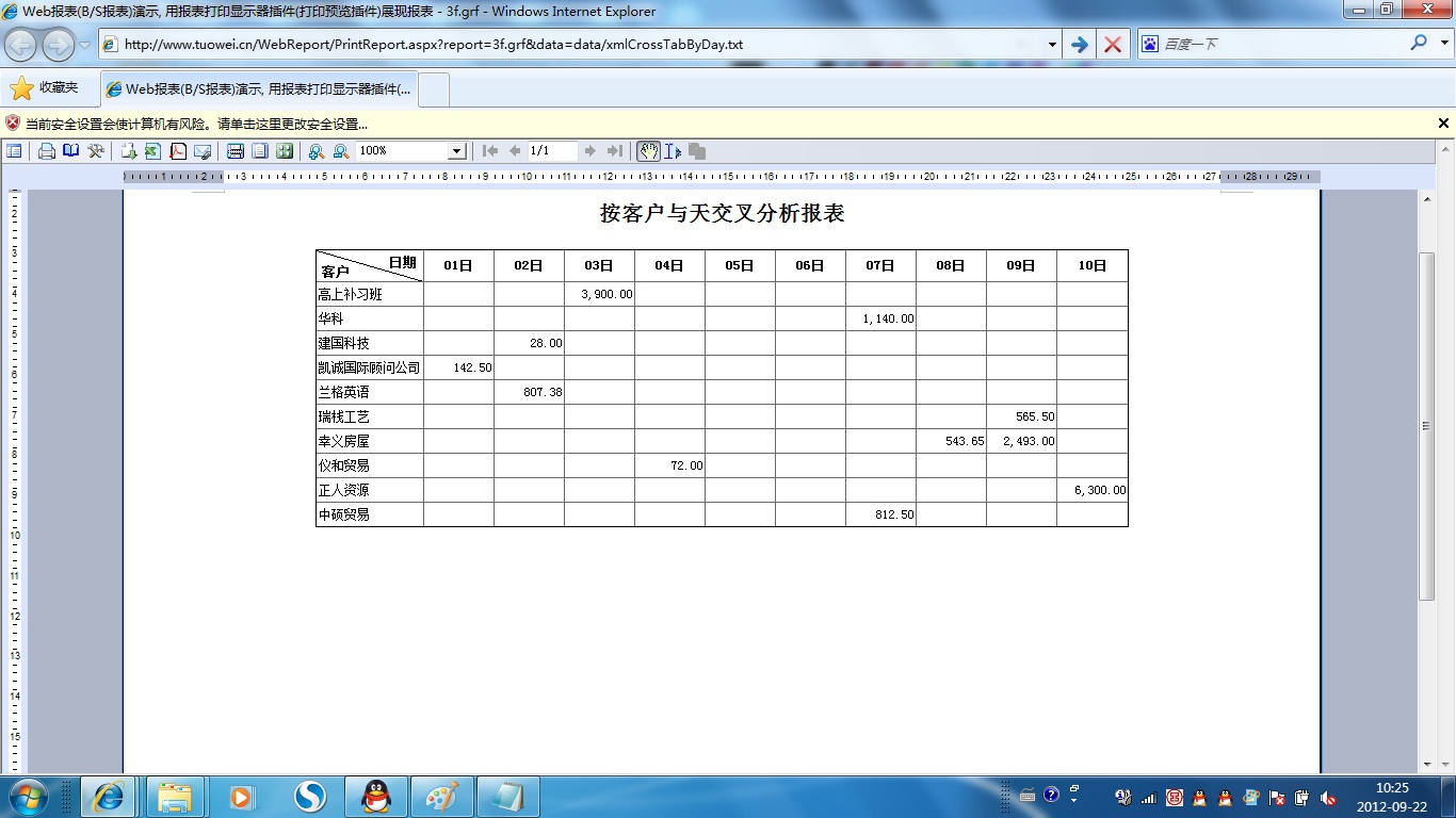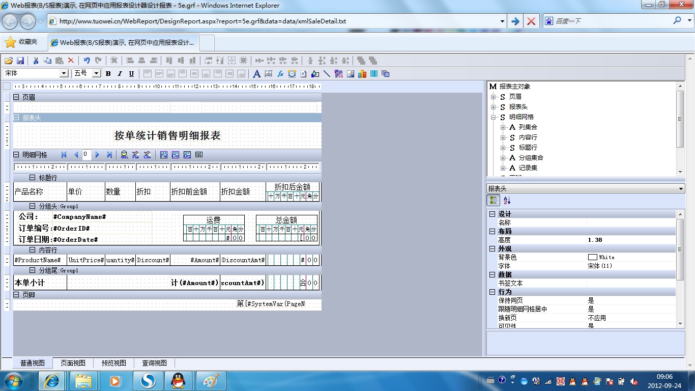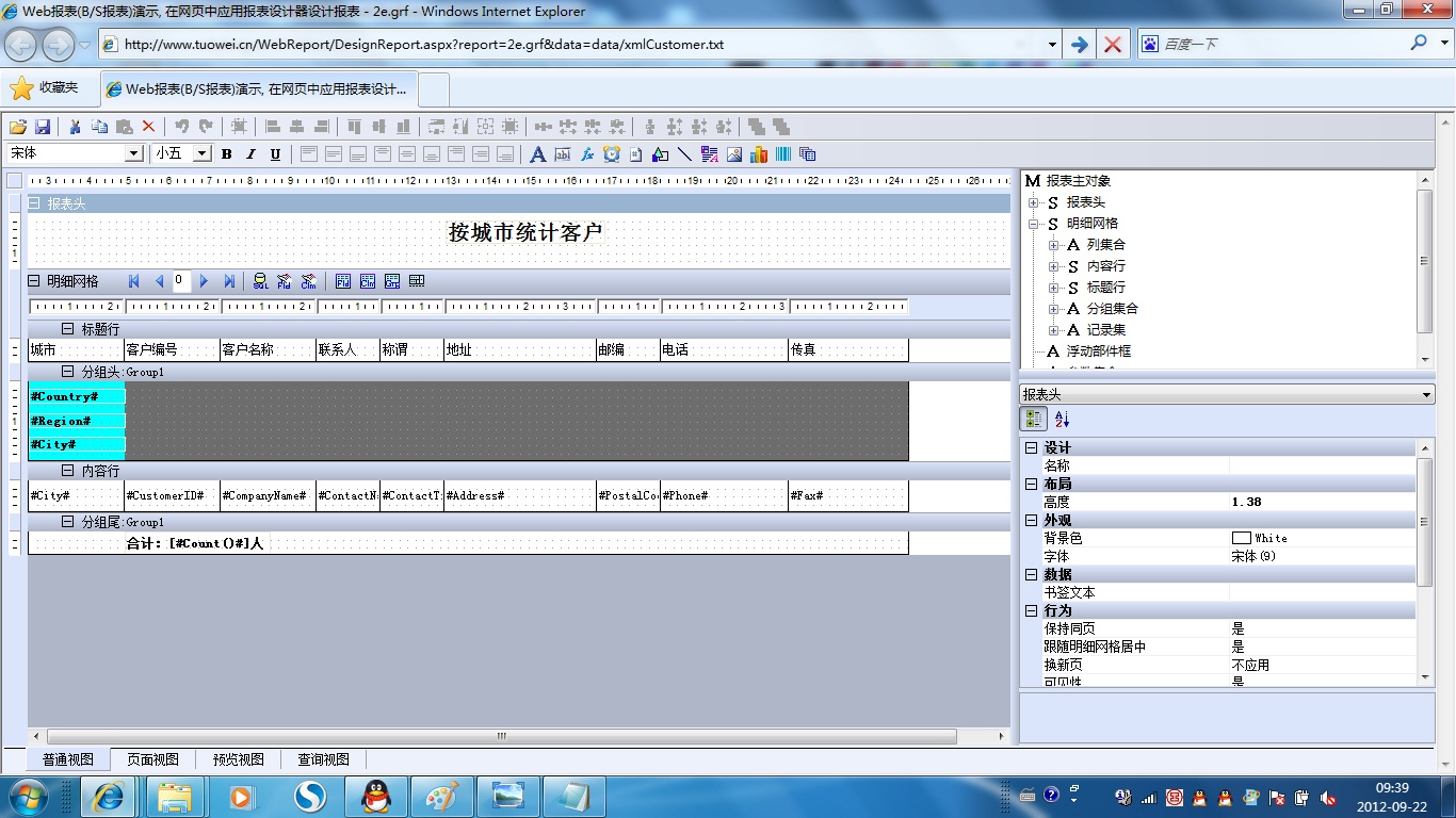 初次访问会自动下载安装报表插件,需要等待几分钟。始终不能看到演示报表,请看关于 IE 安全设置。