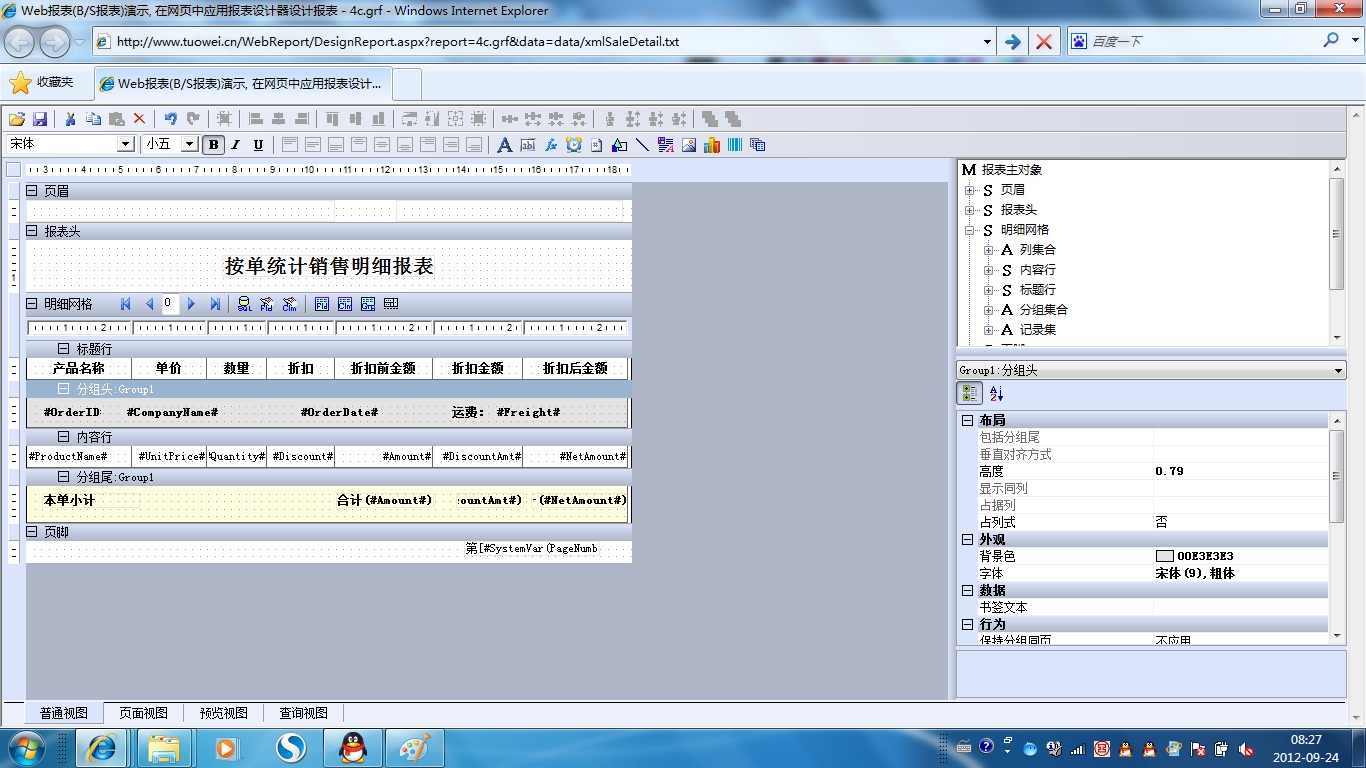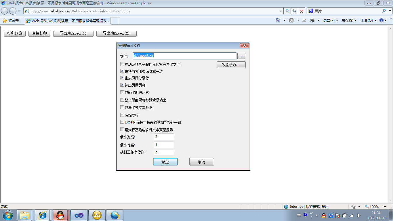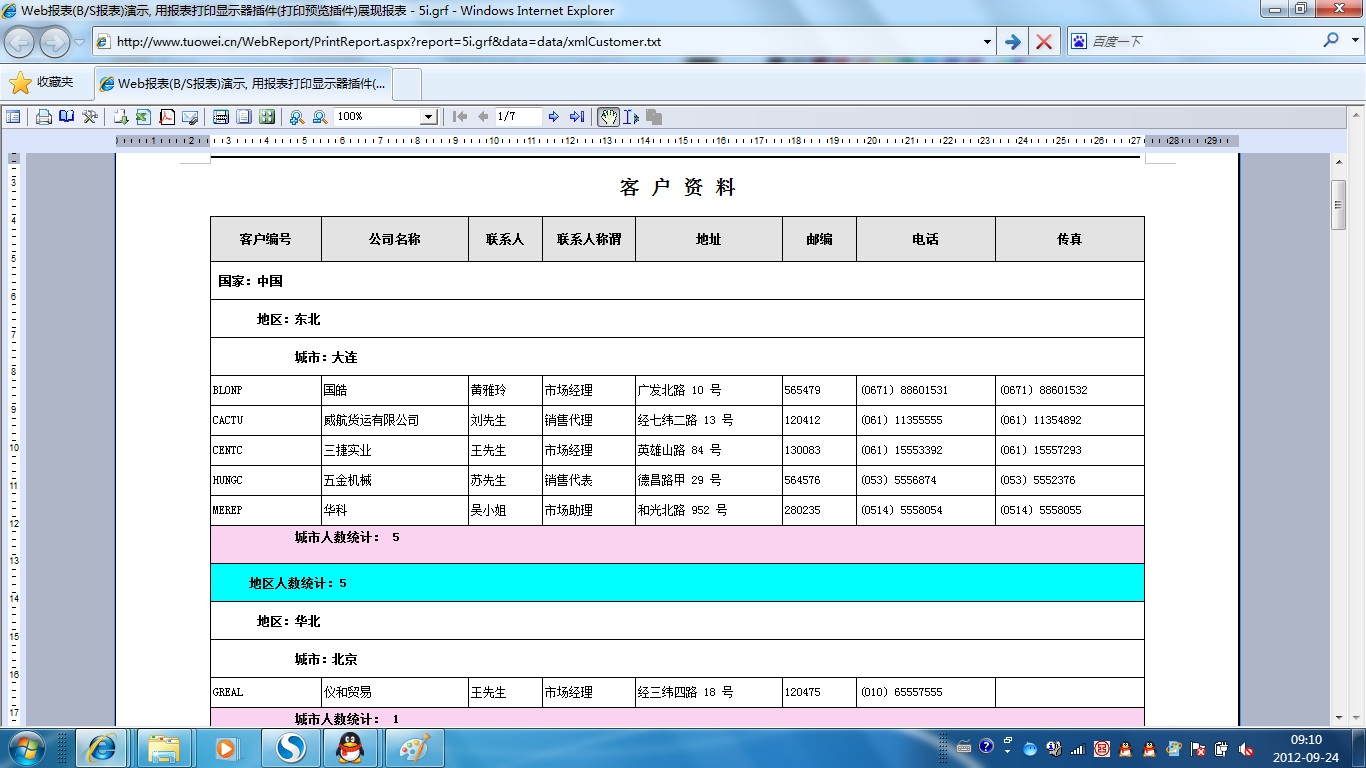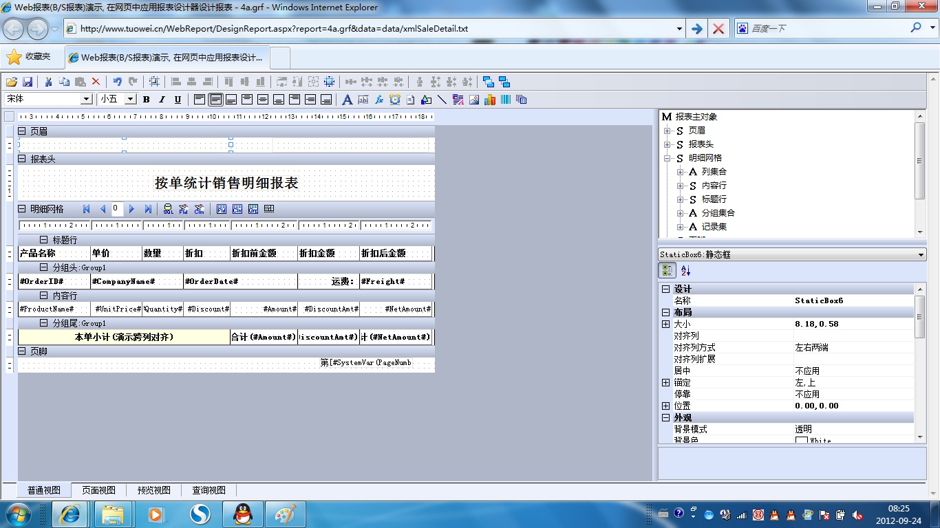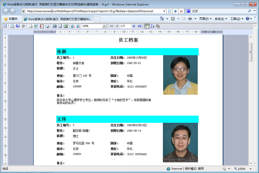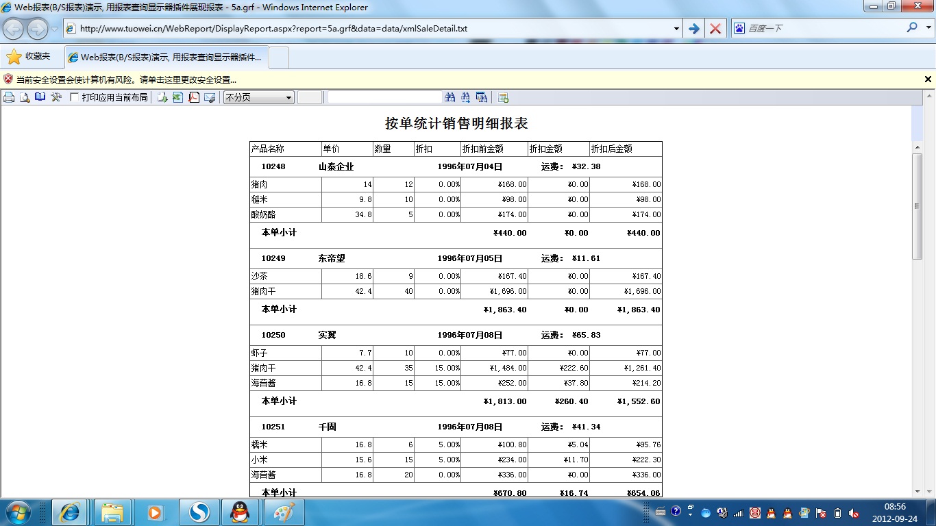初次访问会自动下载安装报表插件,需要等待几分钟。始终不能看到演示报表,请看关于 IE 安全设置。