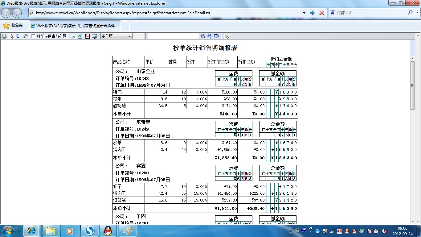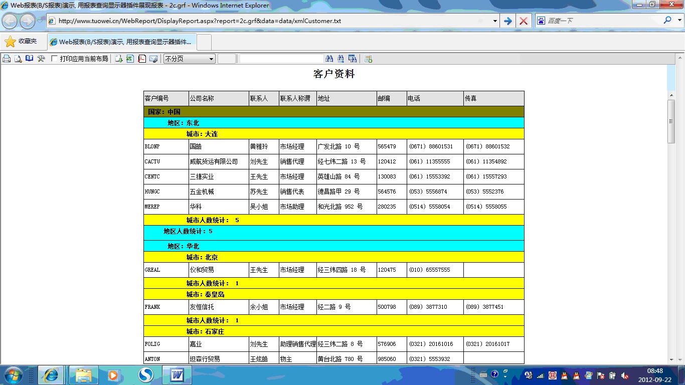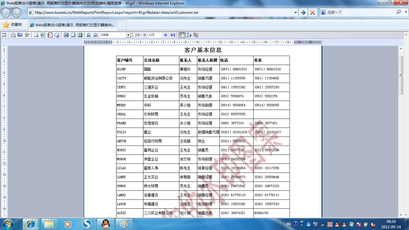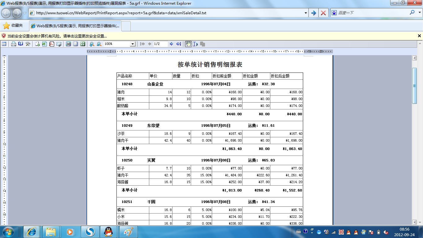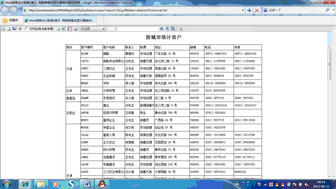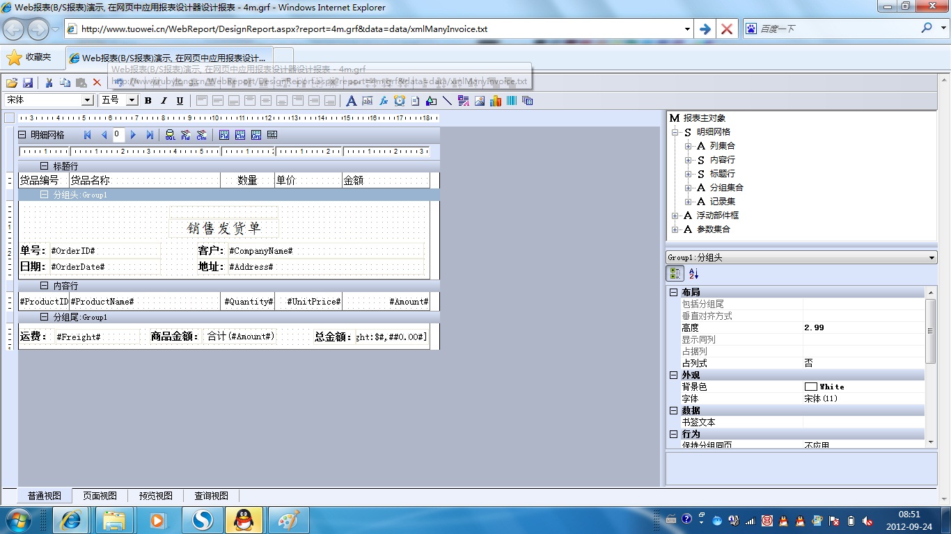 初次访问会自动下载安装报表插件,需要等待几分钟。始终不能看到演示报表,请看关于 IE 安全设置。