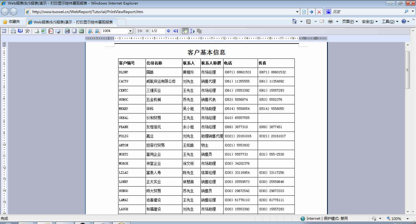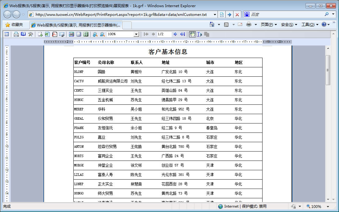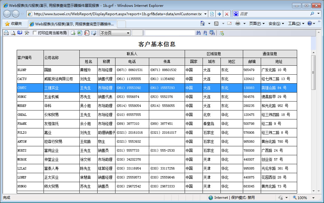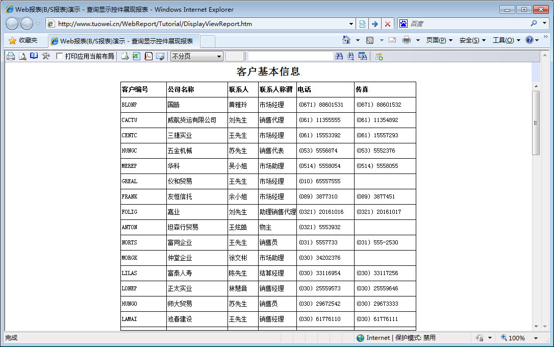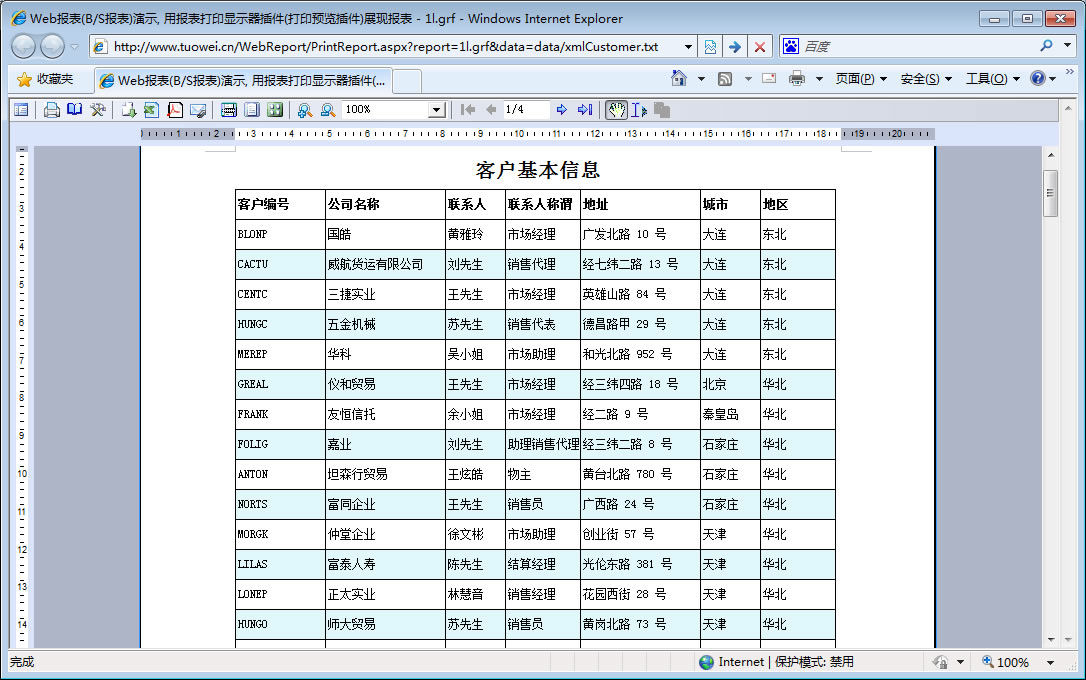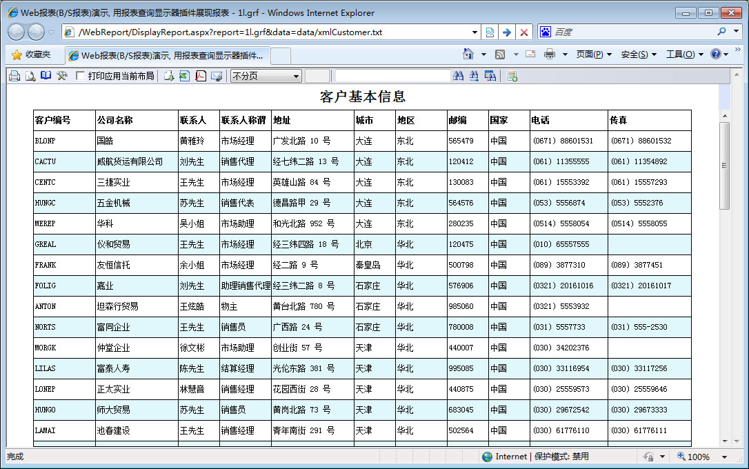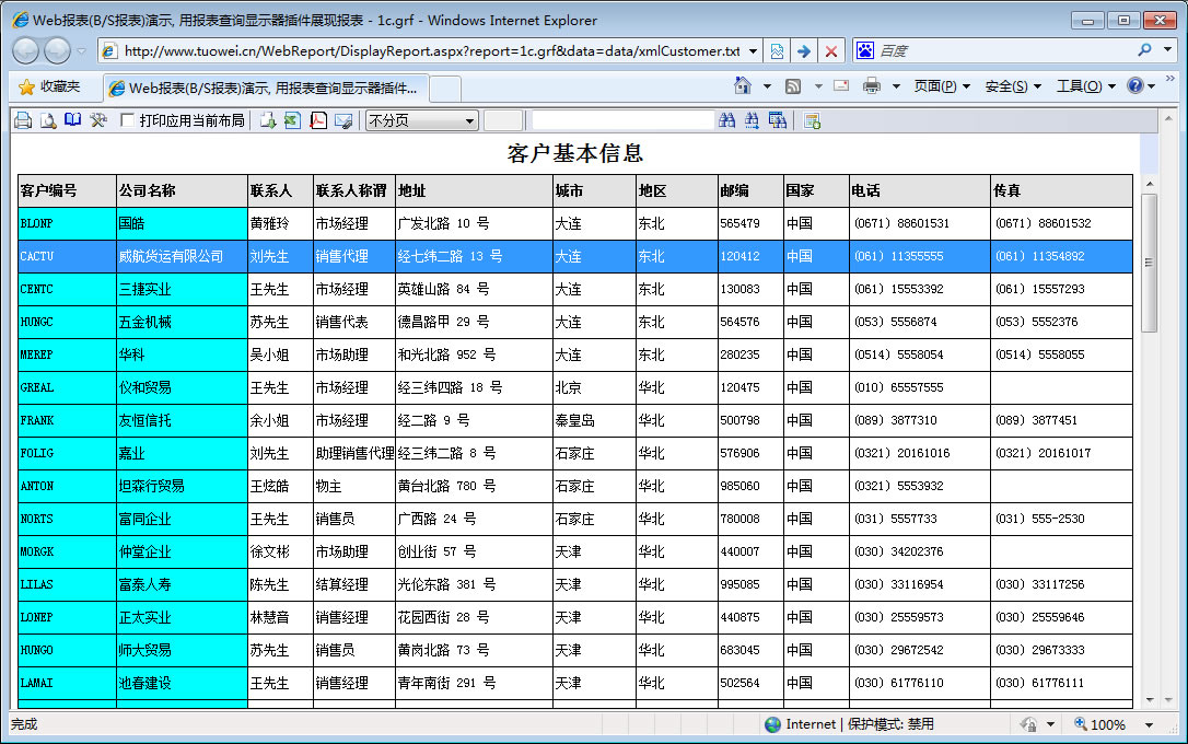 | 打印网页表格数据 | 将一个网页表格中的数据提供给报表并打印出来。 | ||