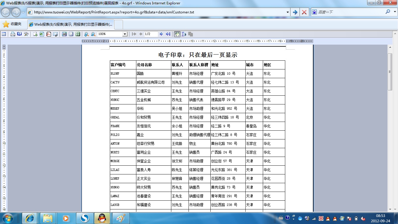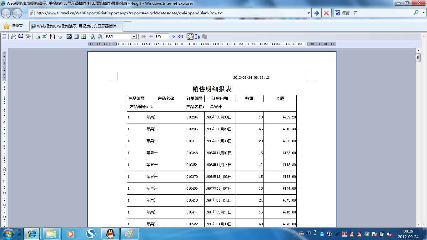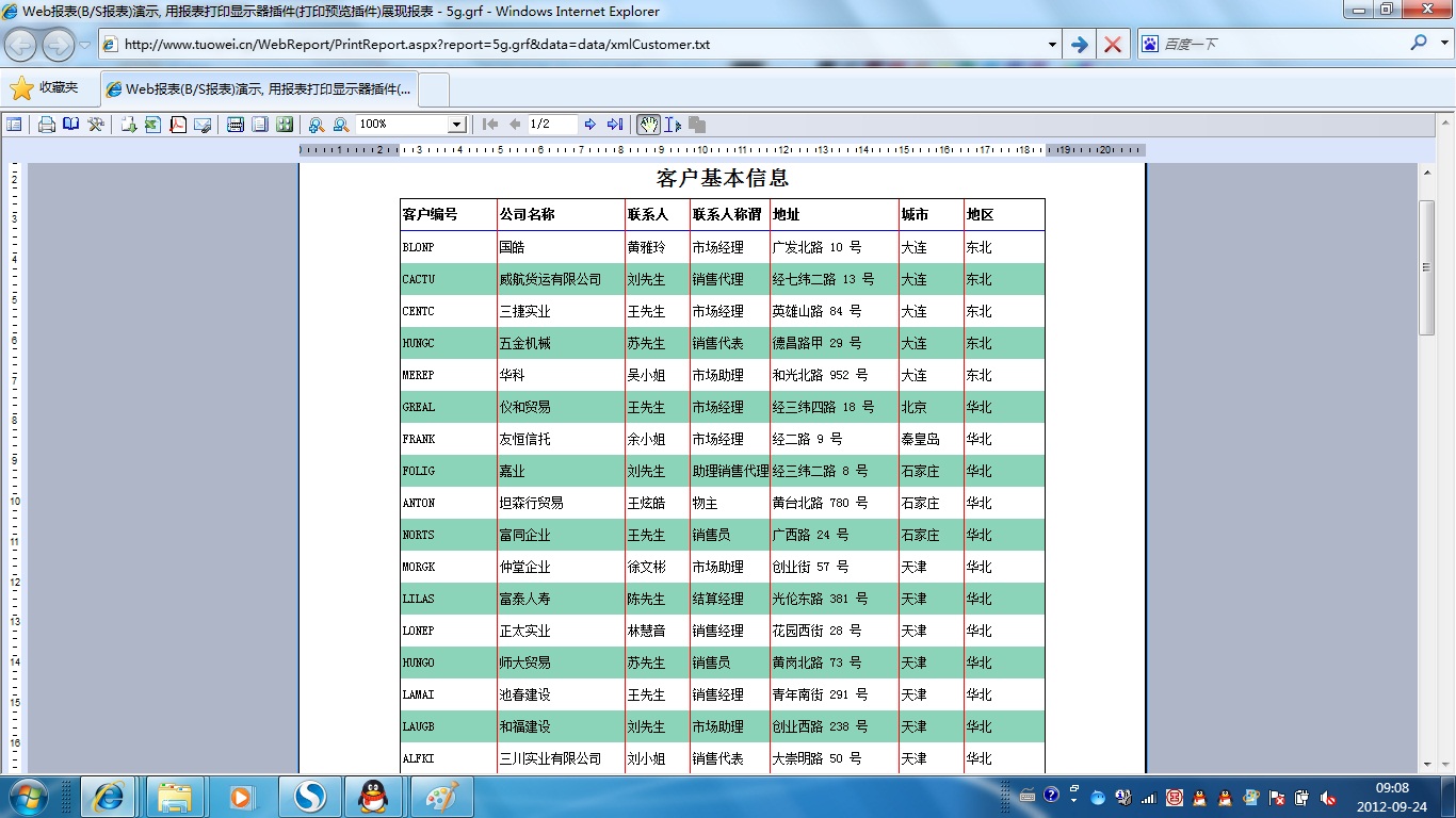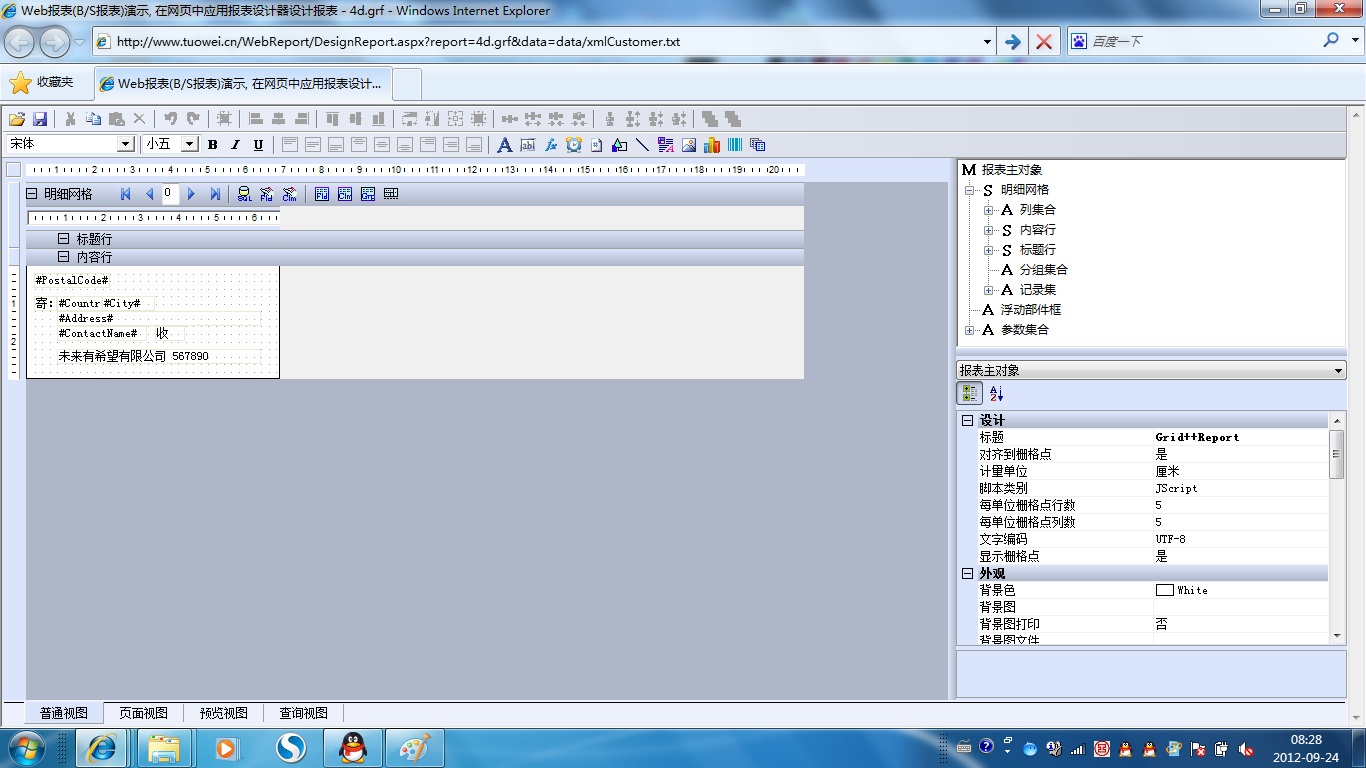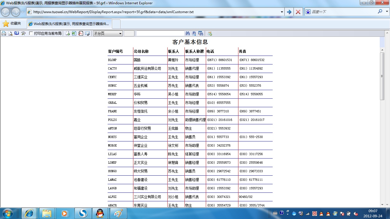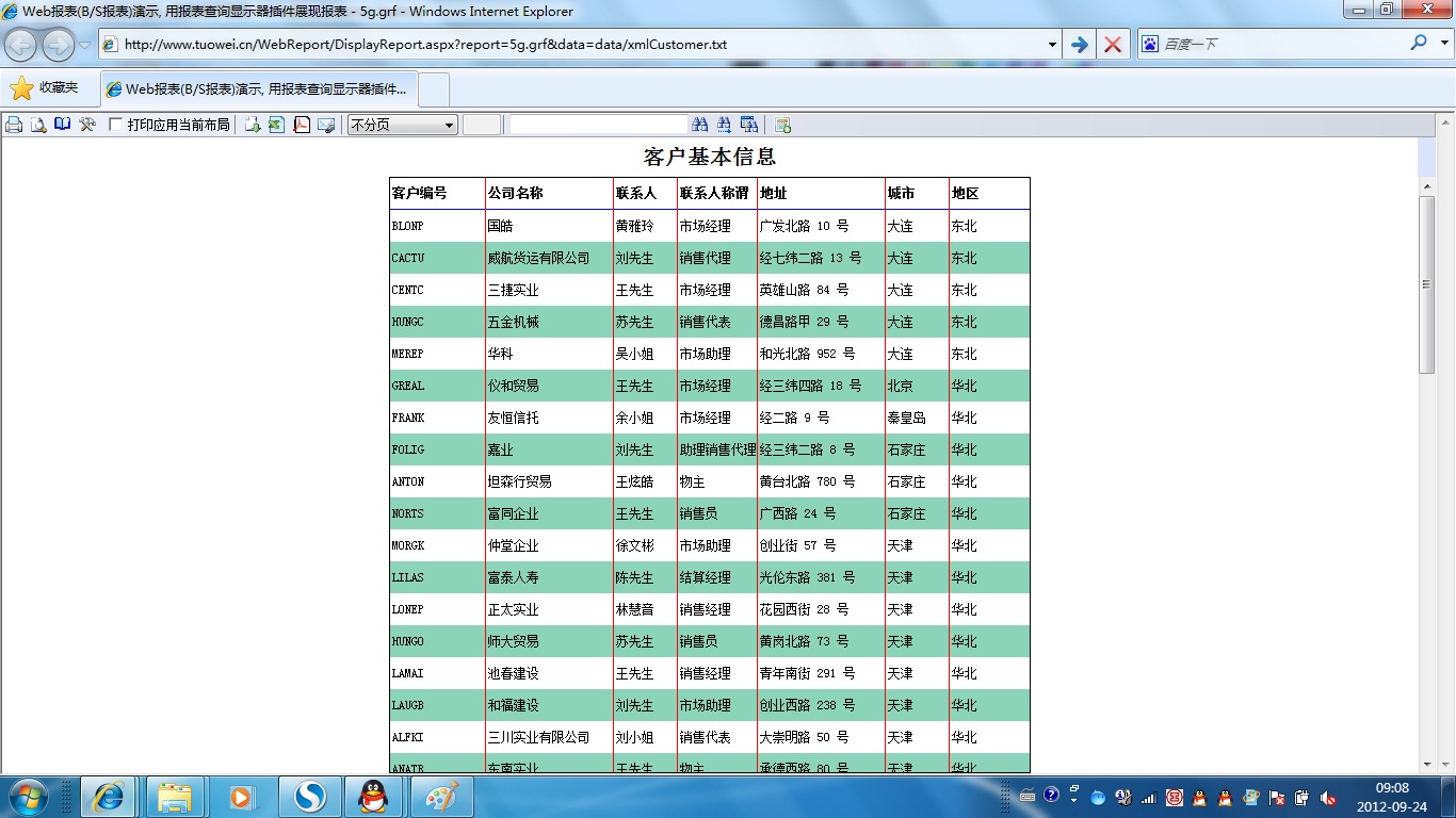 | 打印网页表格数据 | 将一个网页表格中的数据提供给报表并打印出来。 | ||