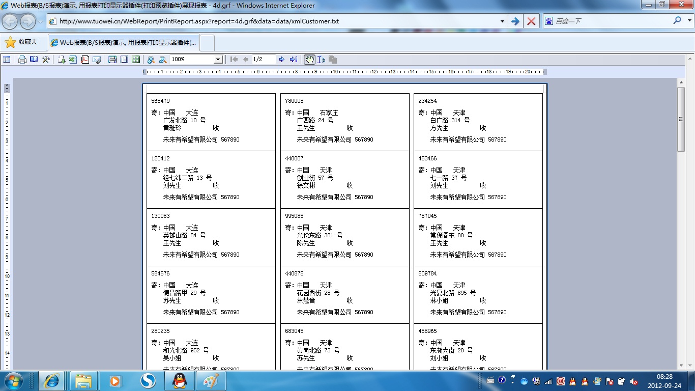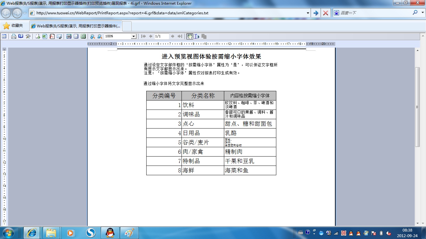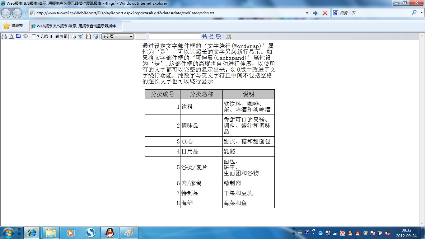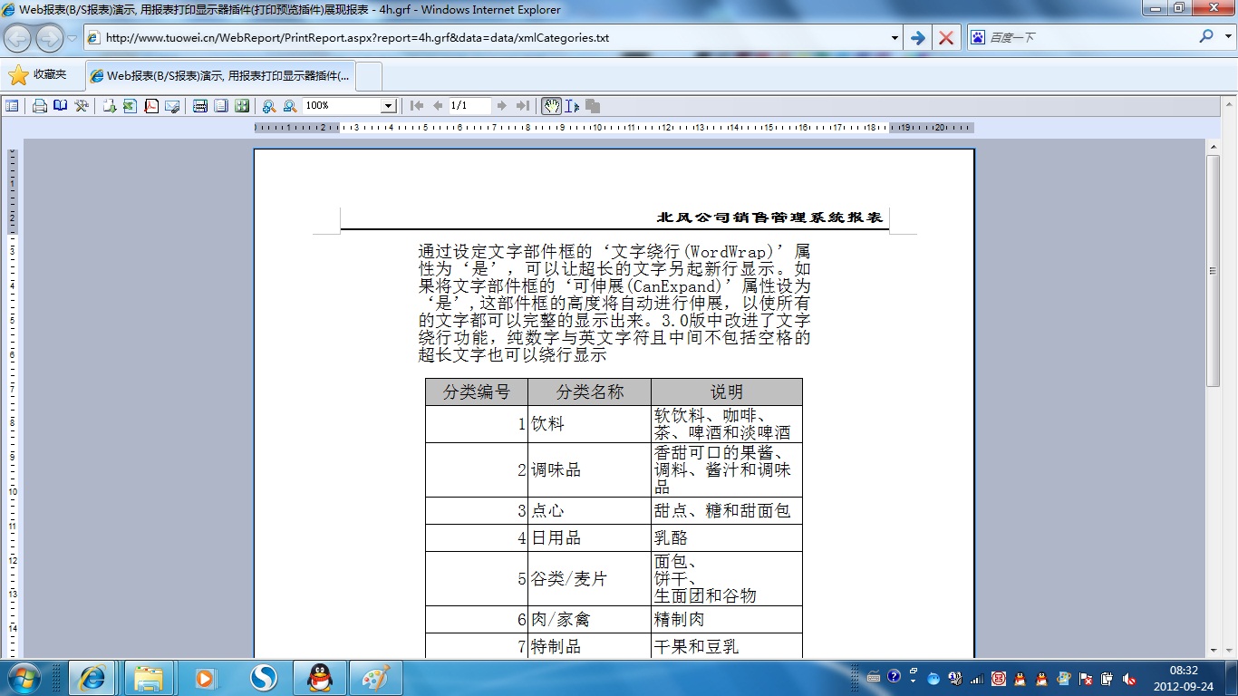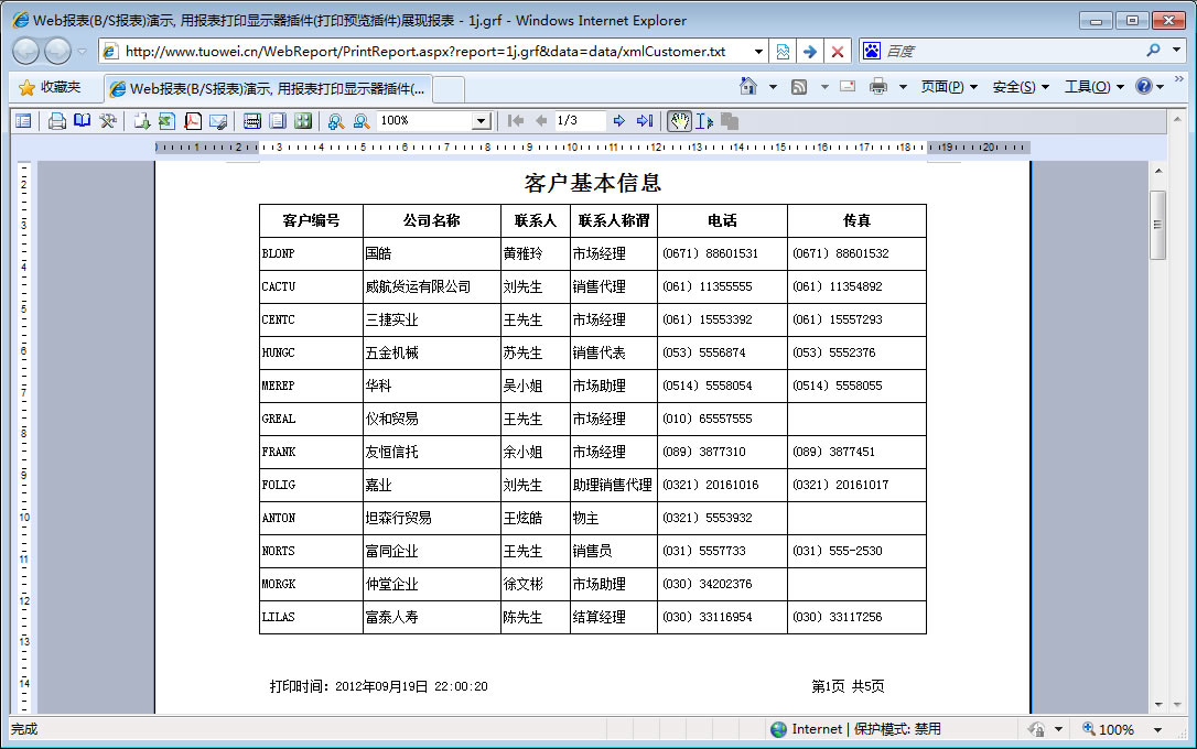 | 打印网页表格数据 | 将一个网页表格中的数据提供给报表并打印出来。 | ||