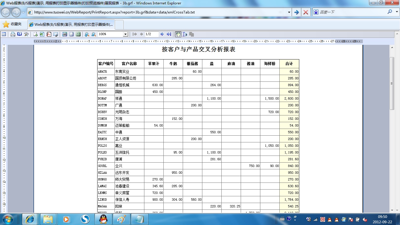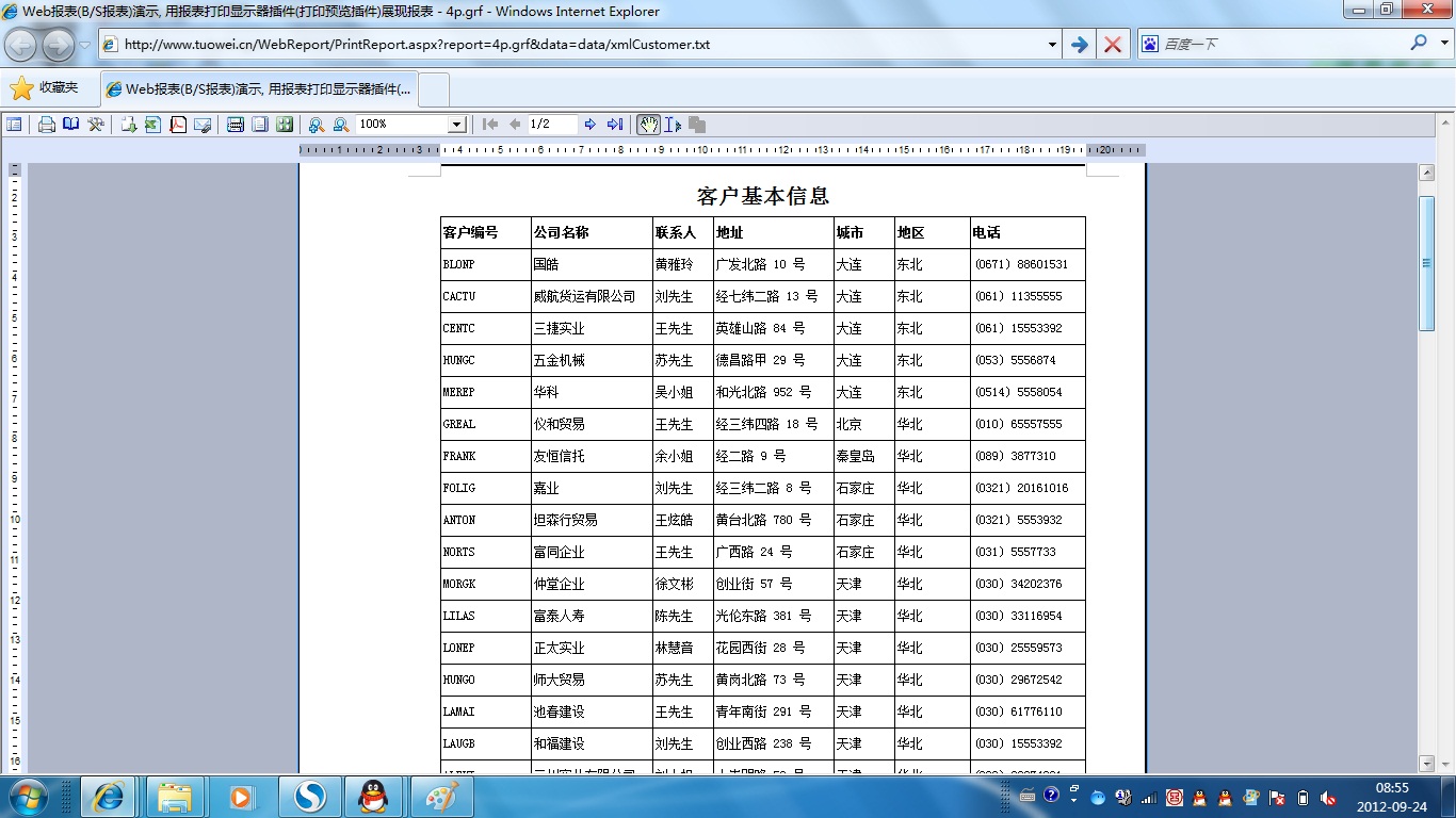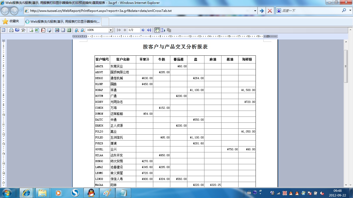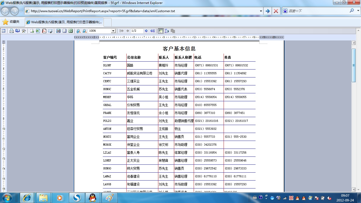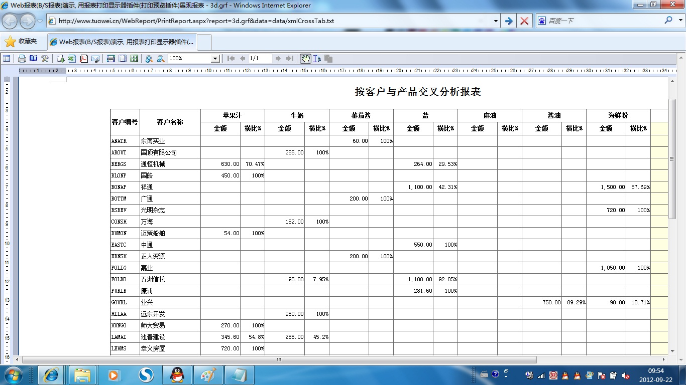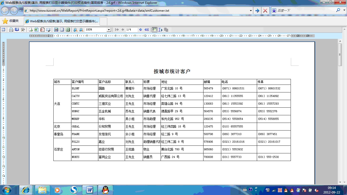 | 打印网页表格数据 | 将一个网页表格中的数据提供给报表并打印出来。 | ||