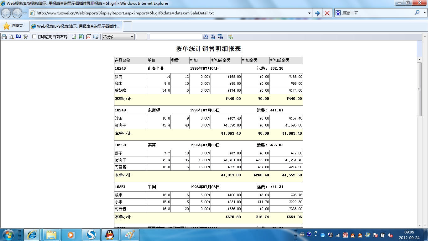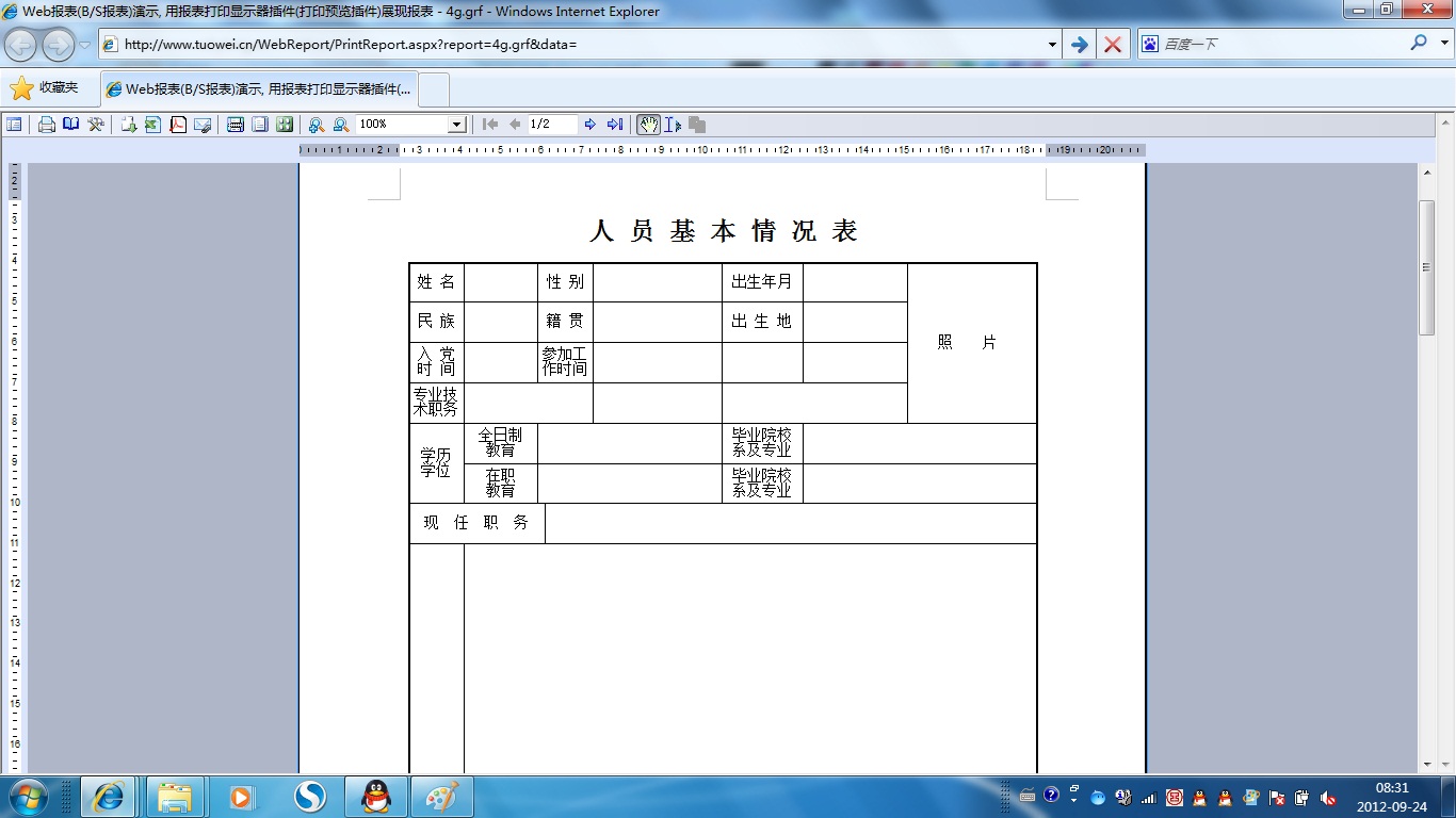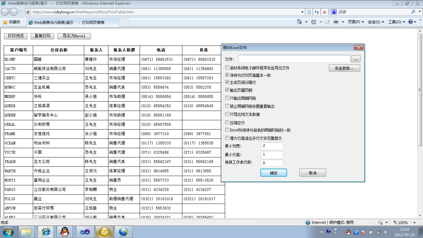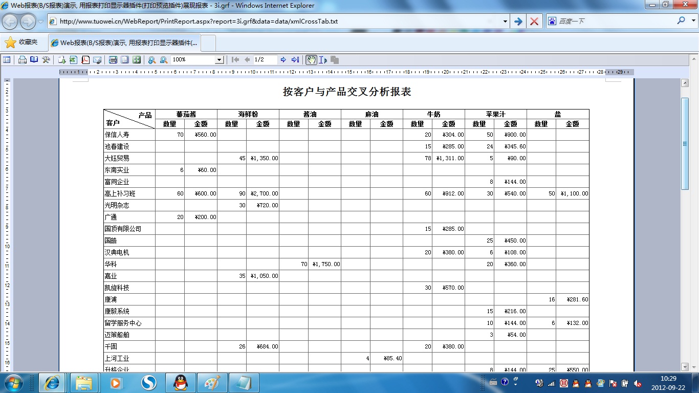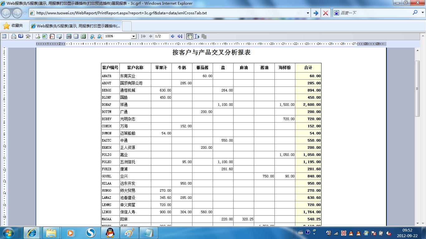 | 打印网页表格数据 | 将一个网页表格中的数据提供给报表并打印出来。 | ||