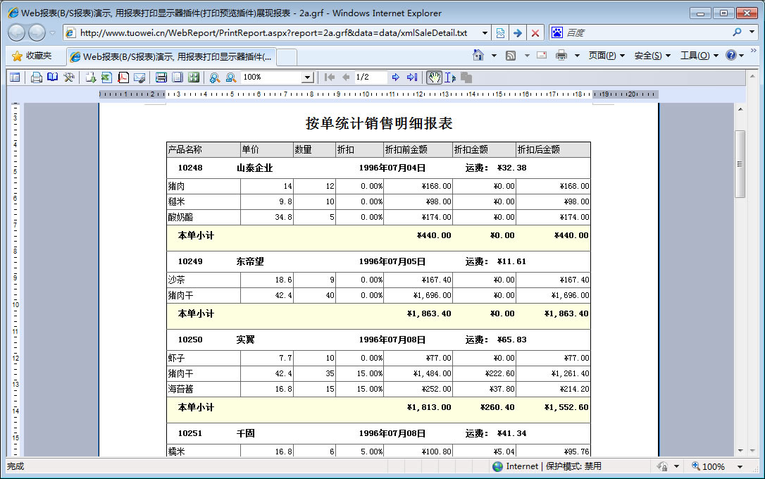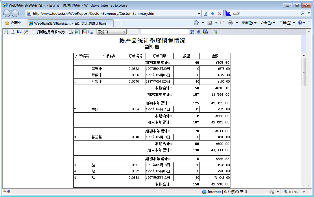| 2c.多级分组 | [查询] | [设计] | 演示定义多个分组实现多级分组报表。 |