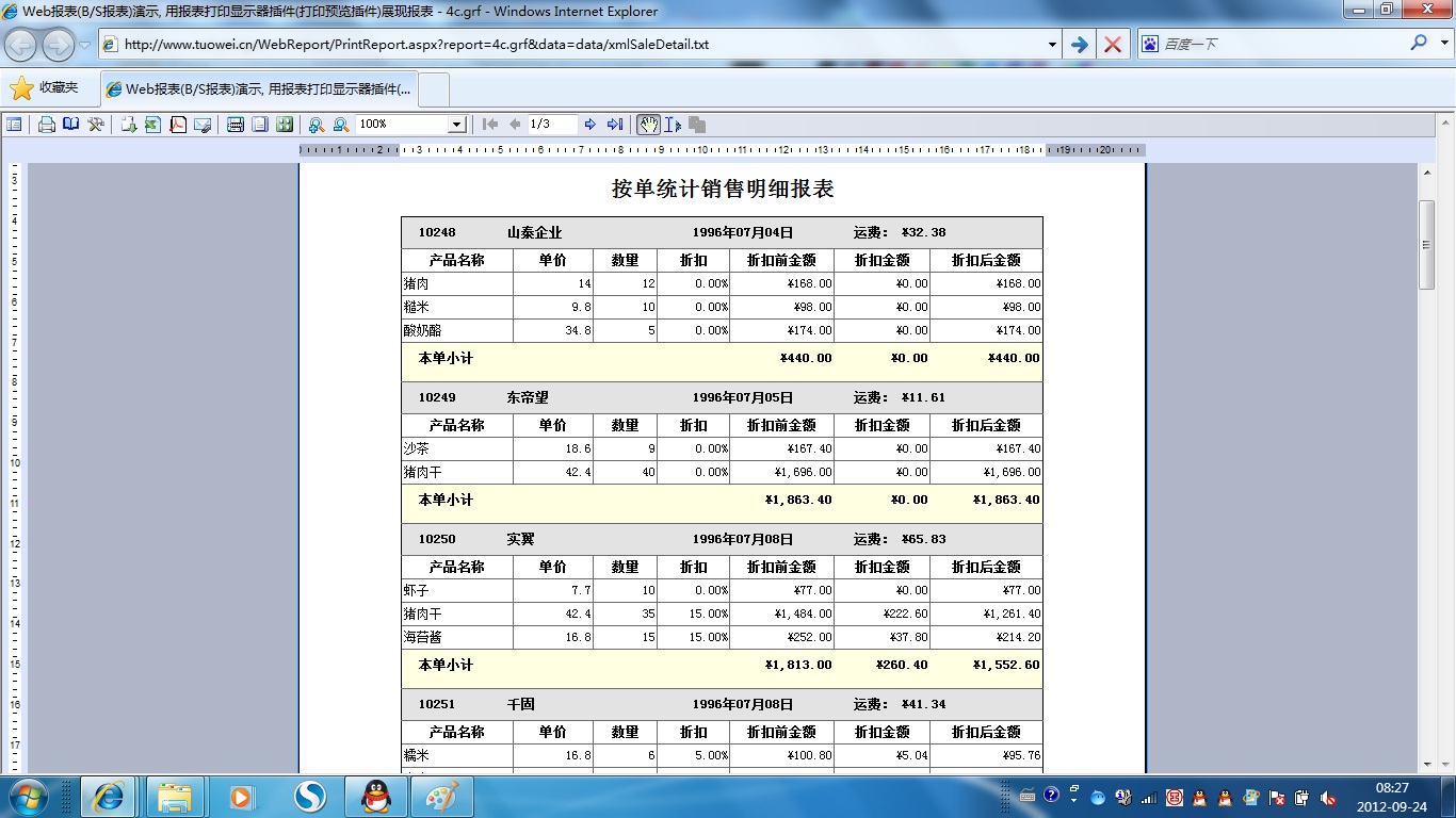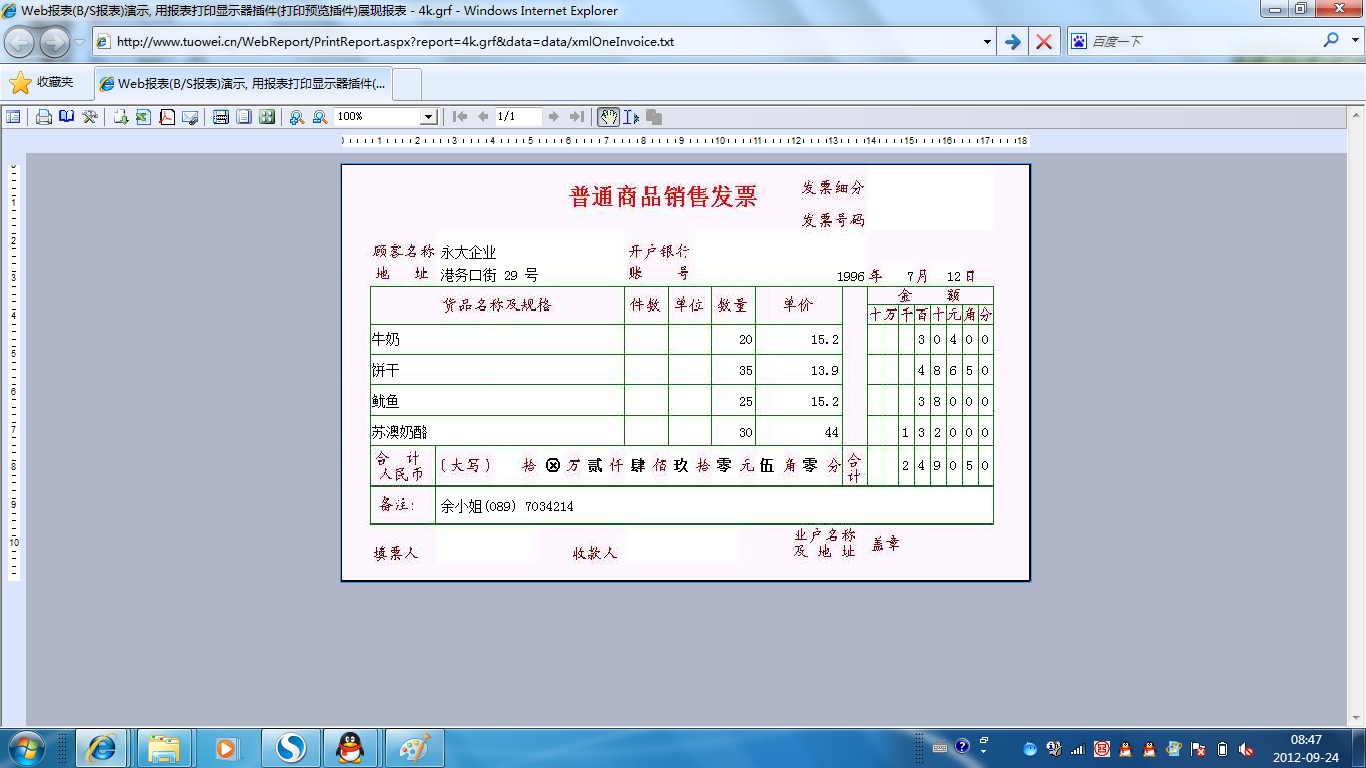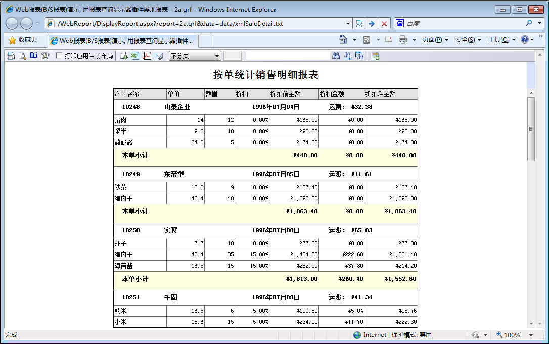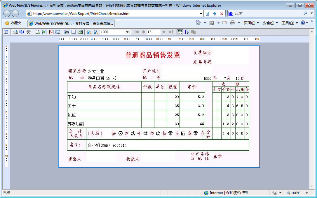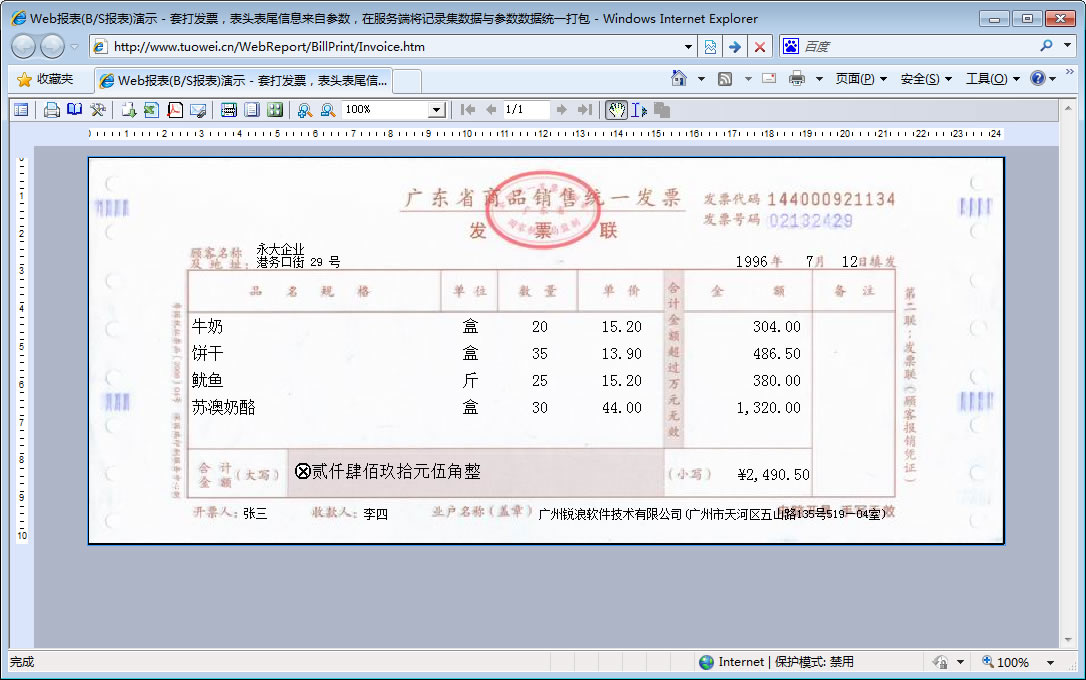 | 发票套打-参数打包 | 演示发票打印,在服务器端将报表的明细记录数据与参数数据统一打包在一起。 | ||