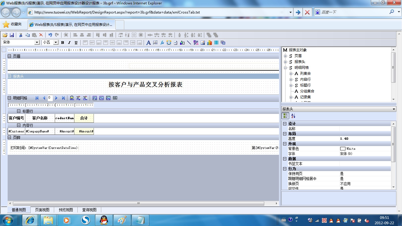 | 3h.交叉表纵向单元格合并 | [查询] | [设计] | 演示交叉表分组单元格合并功能。 |