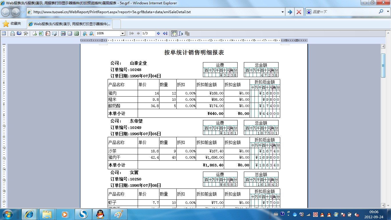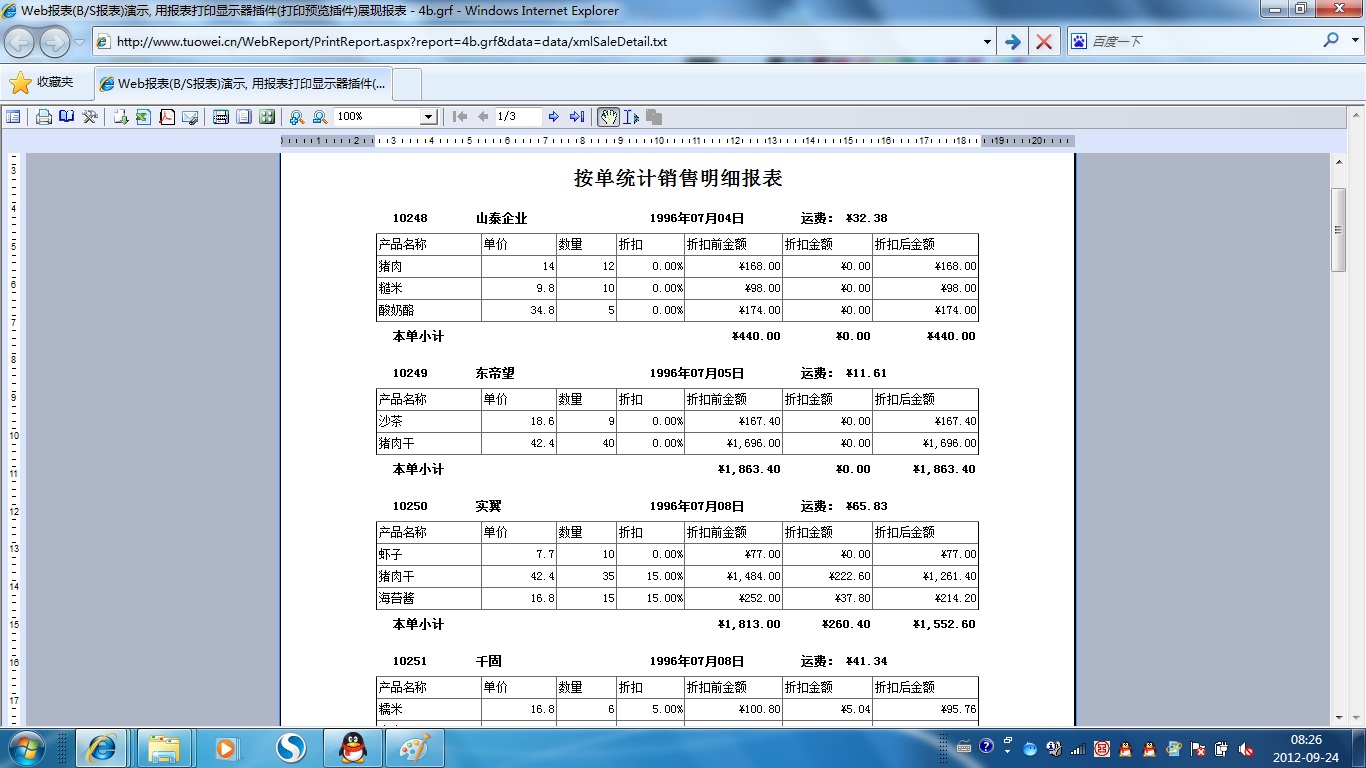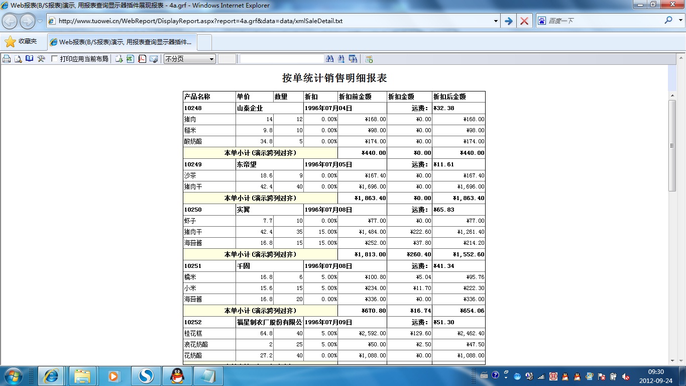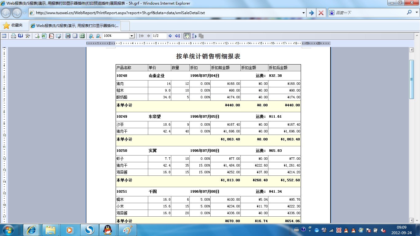 | 表格打印策略 | 用不同的打印策略打印同一表格报表,得到不同的打印结果。 | ||