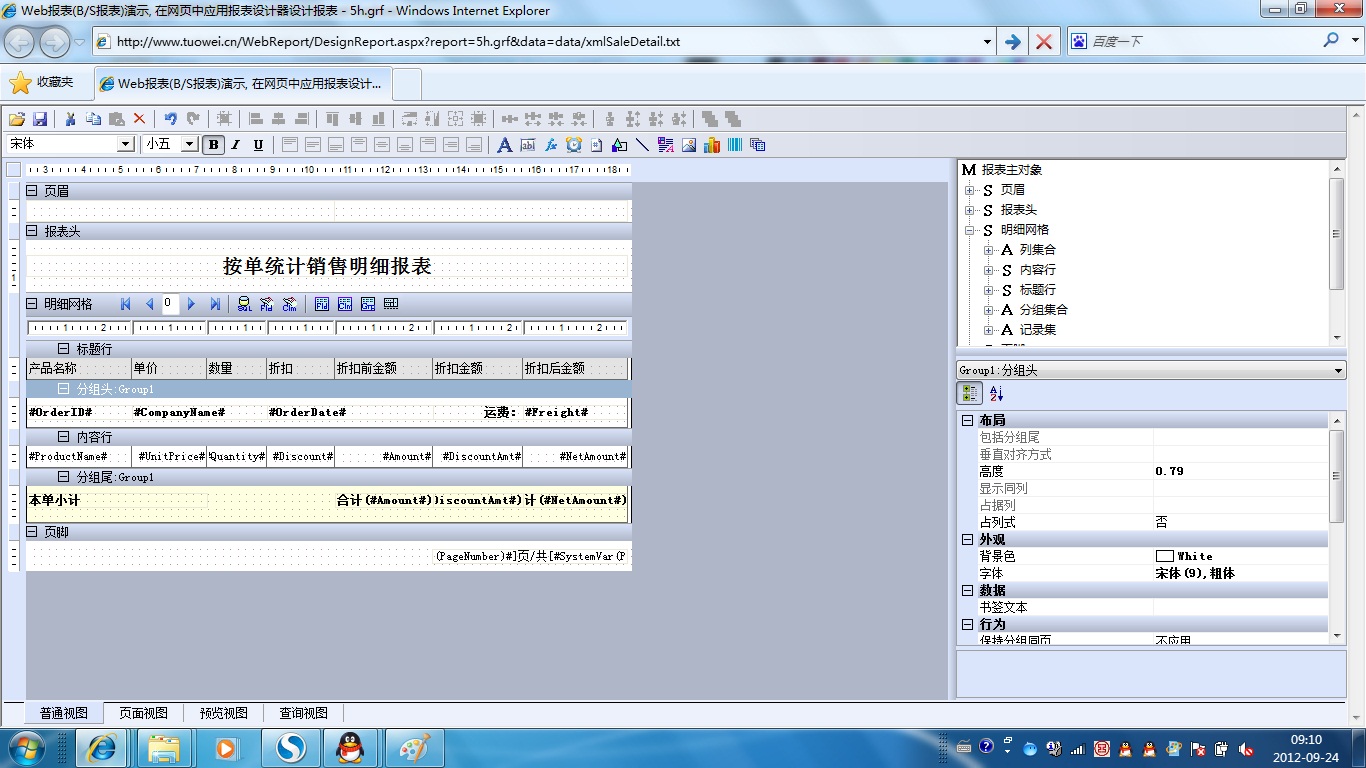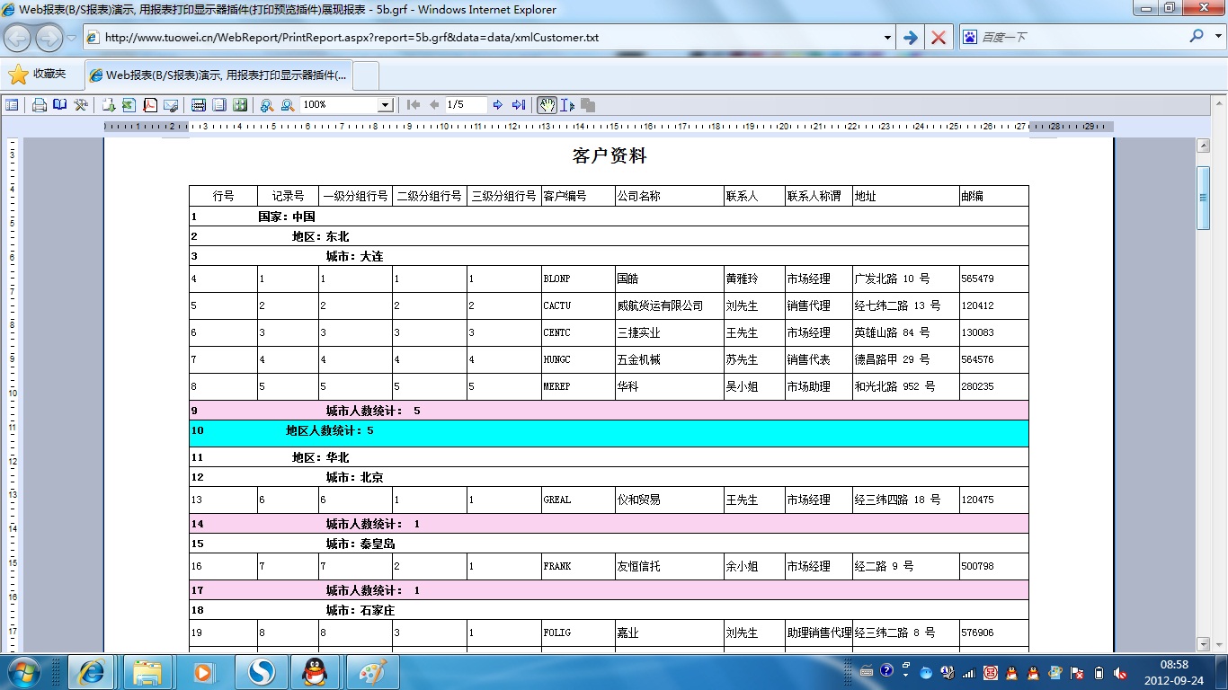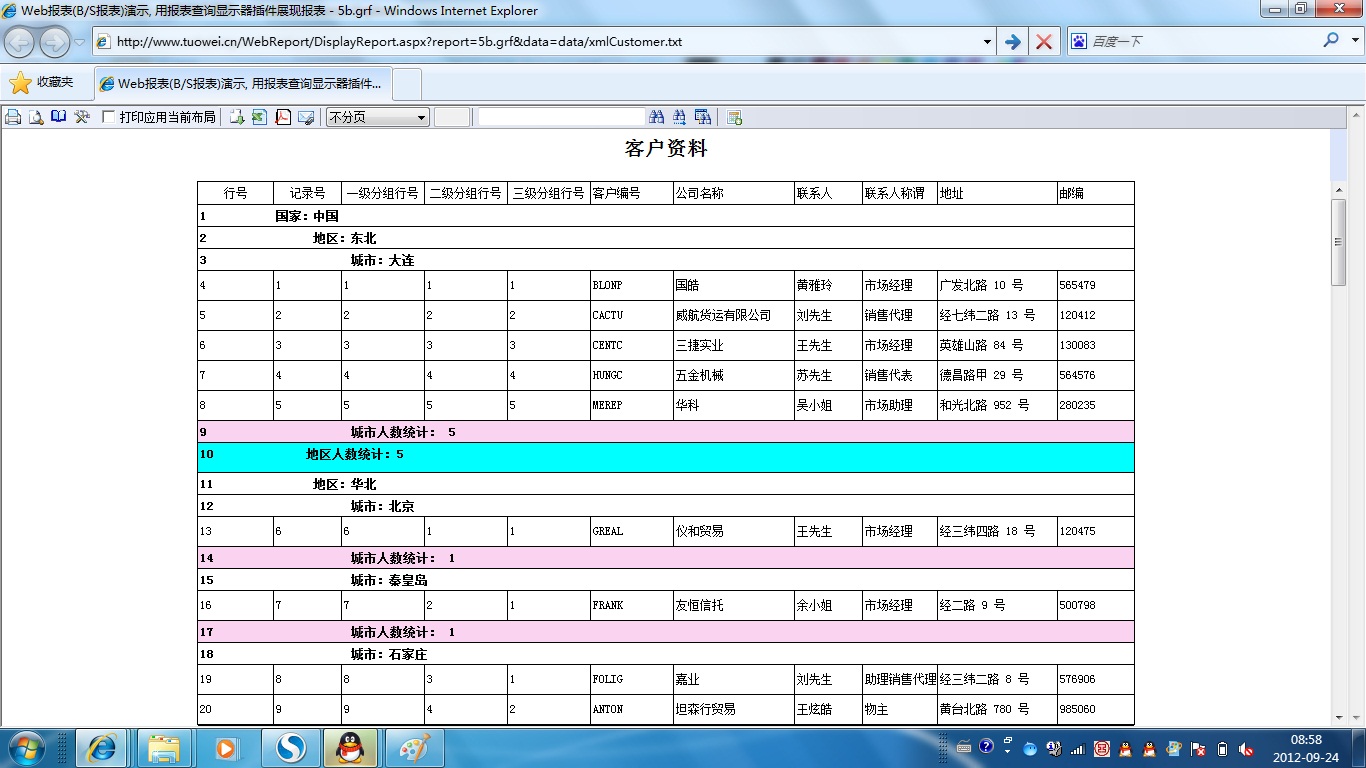 | 2g.页分组 | [查询] | [设计] | 演示页分组,页分组在每个打印页面中产生一个分组项,不需要定义分组依据字段。查询显示时页分组被忽略掉。 |