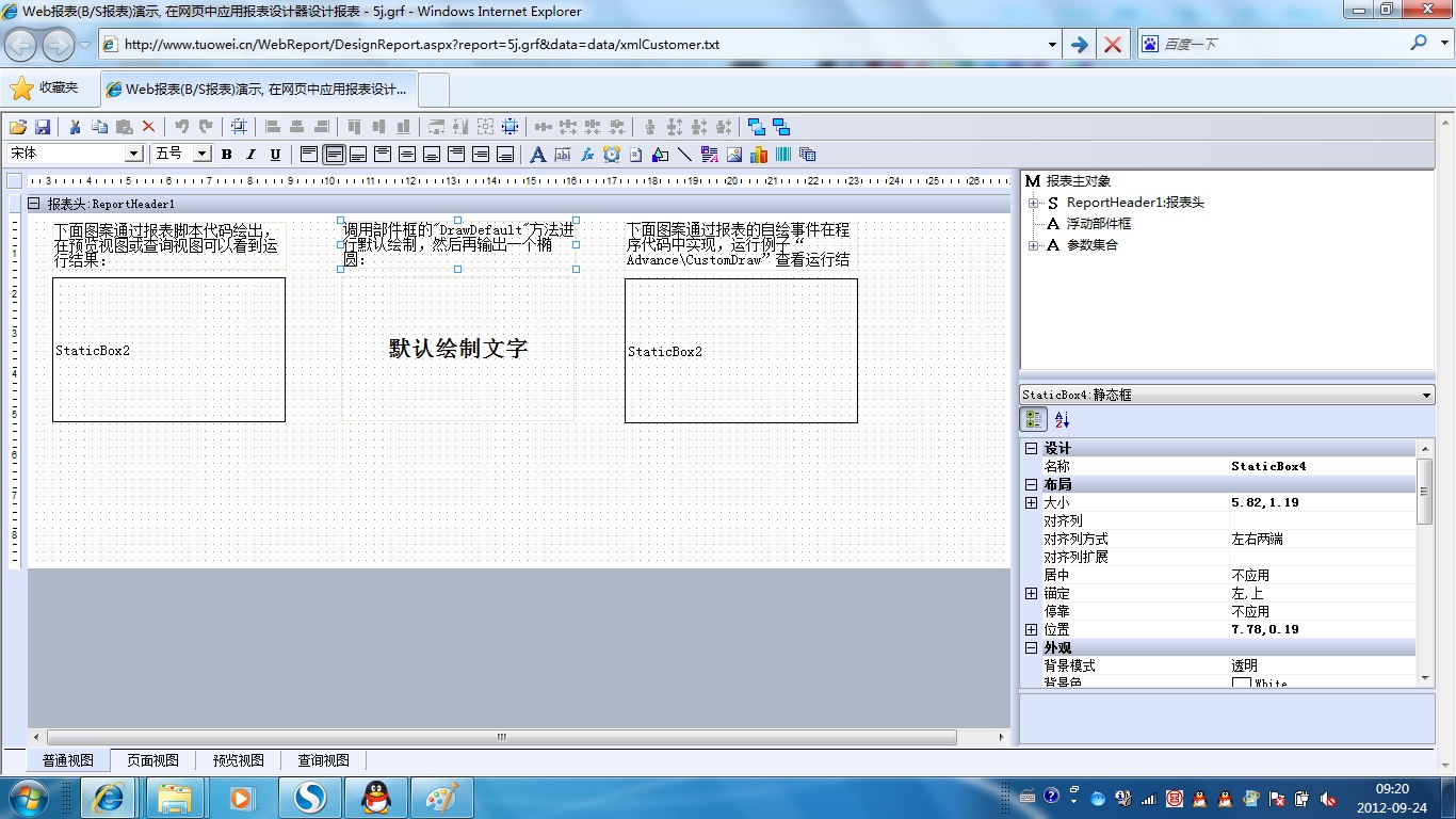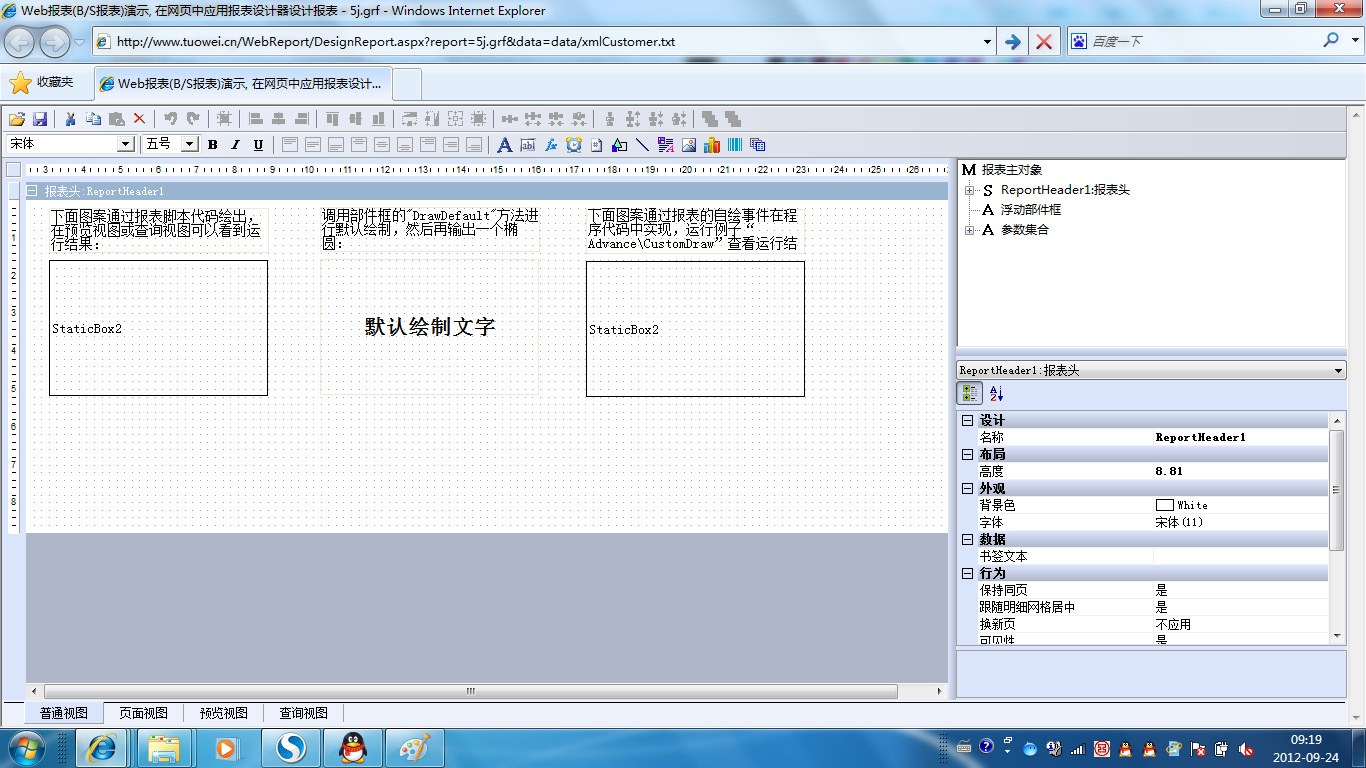 | 5j.部件框自定义绘制 | [查询] | [设计] | 演示自定义绘制部件框,绘制任务在报表脚本中实现。 |