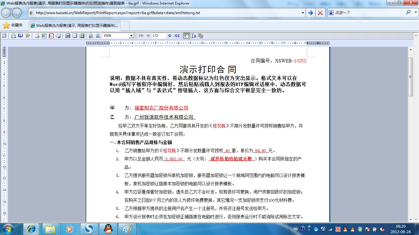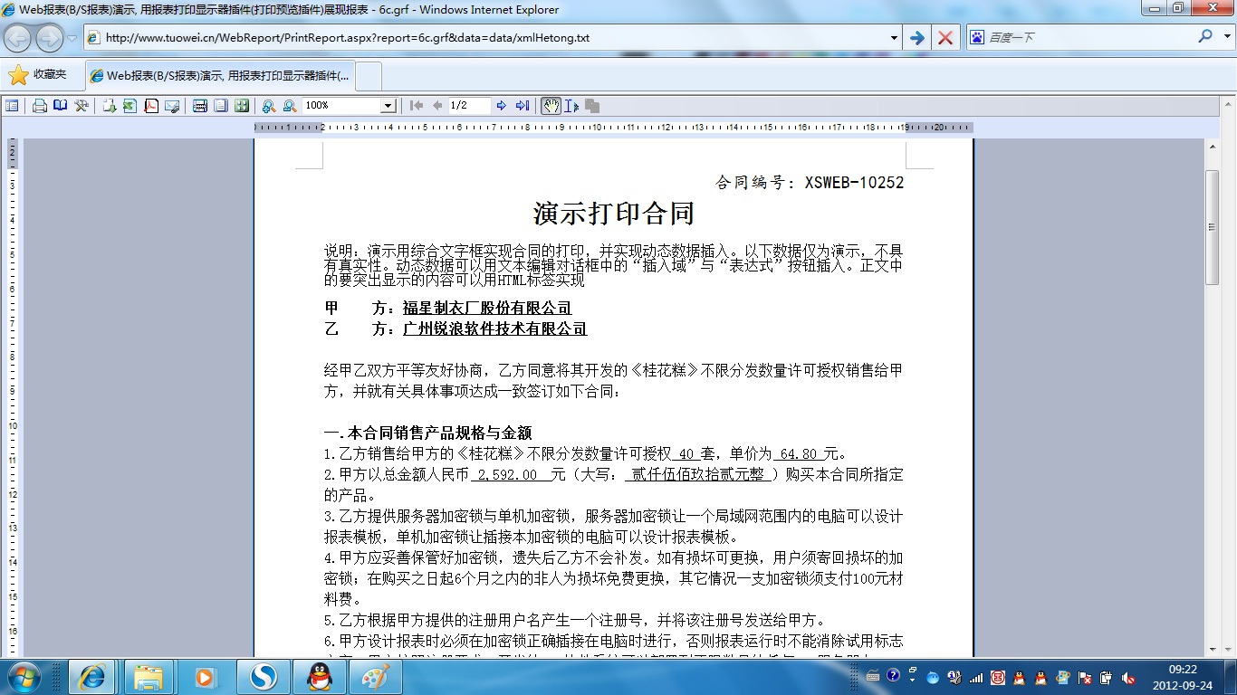 | 6c.合同打印(单份/综合文字框) | [设计] | 演示用综合文字框实现一次打印一份合同。 | |