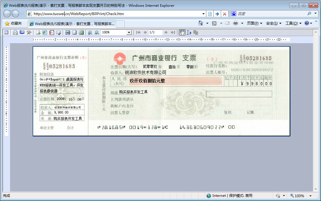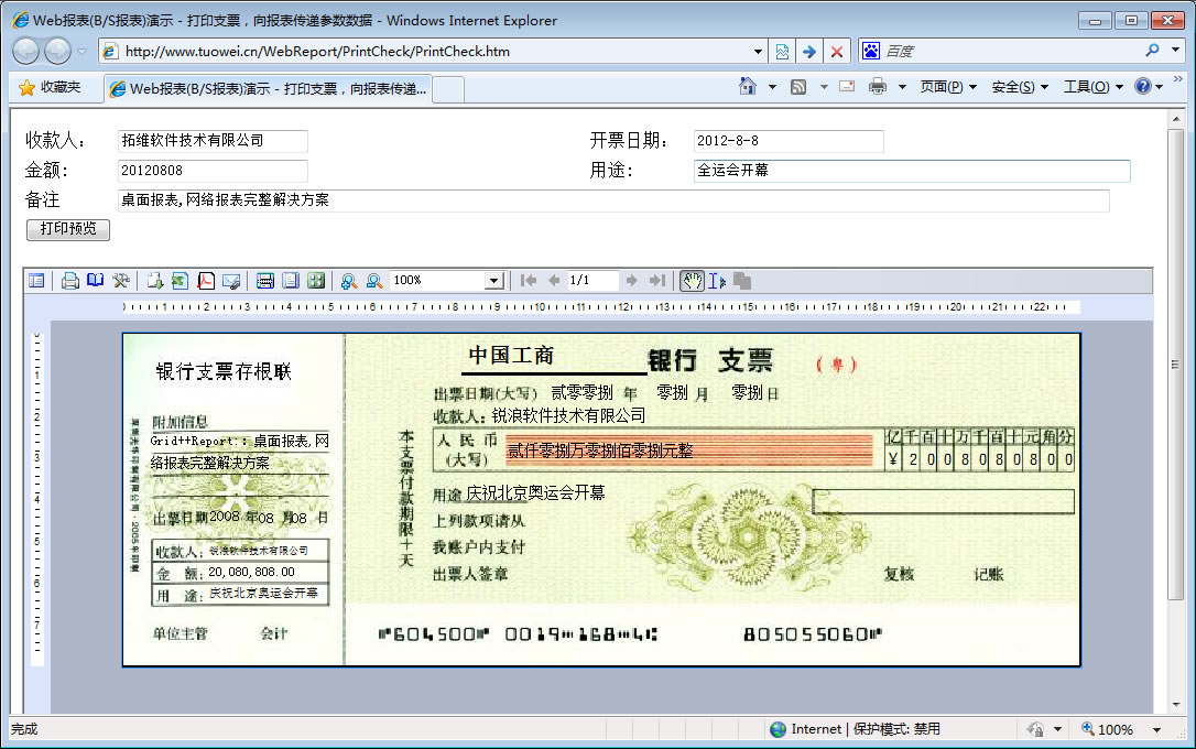 支票打印 | 下载本类例子 | 设计支票打印模板 |