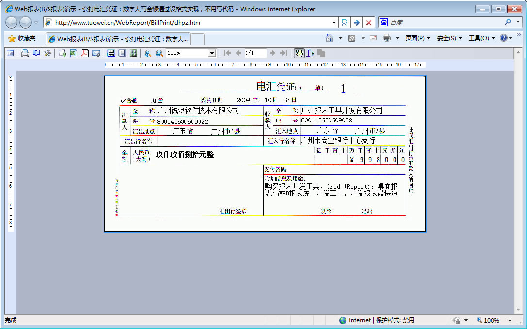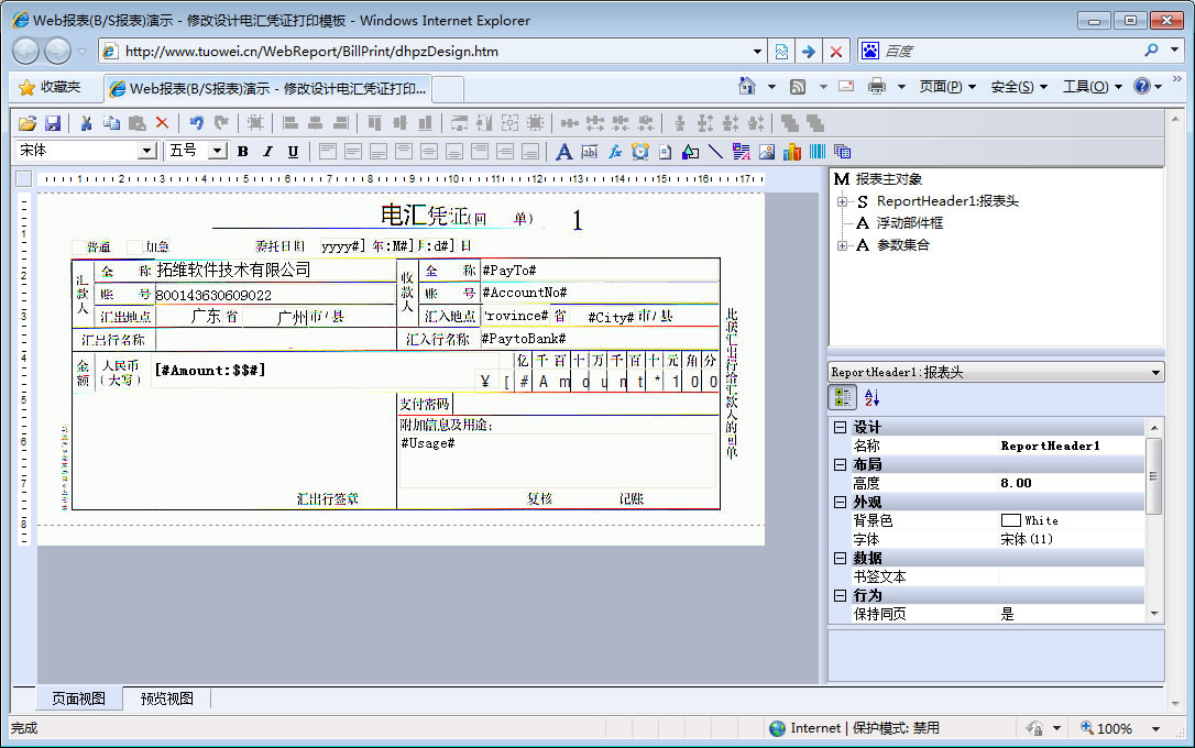 | 电汇单打印 | 设计电汇单打印模板 | ||
