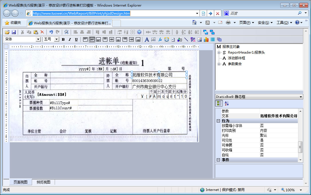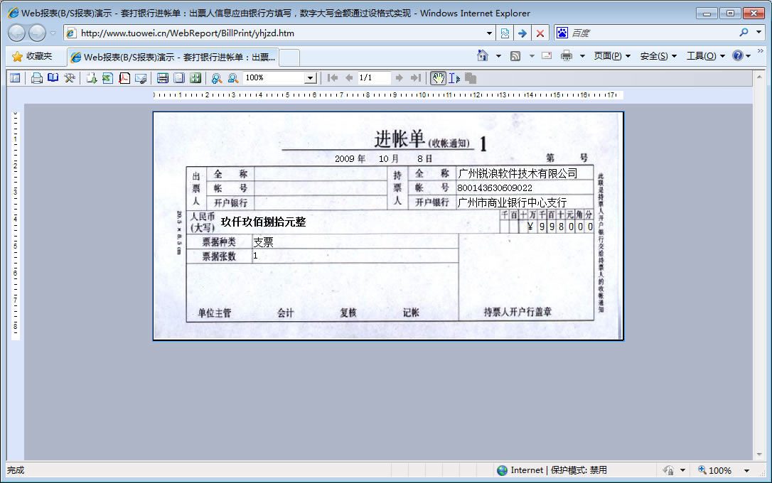 | 银行进帐单打印 | 设计银行进帐单打印模板 | ||