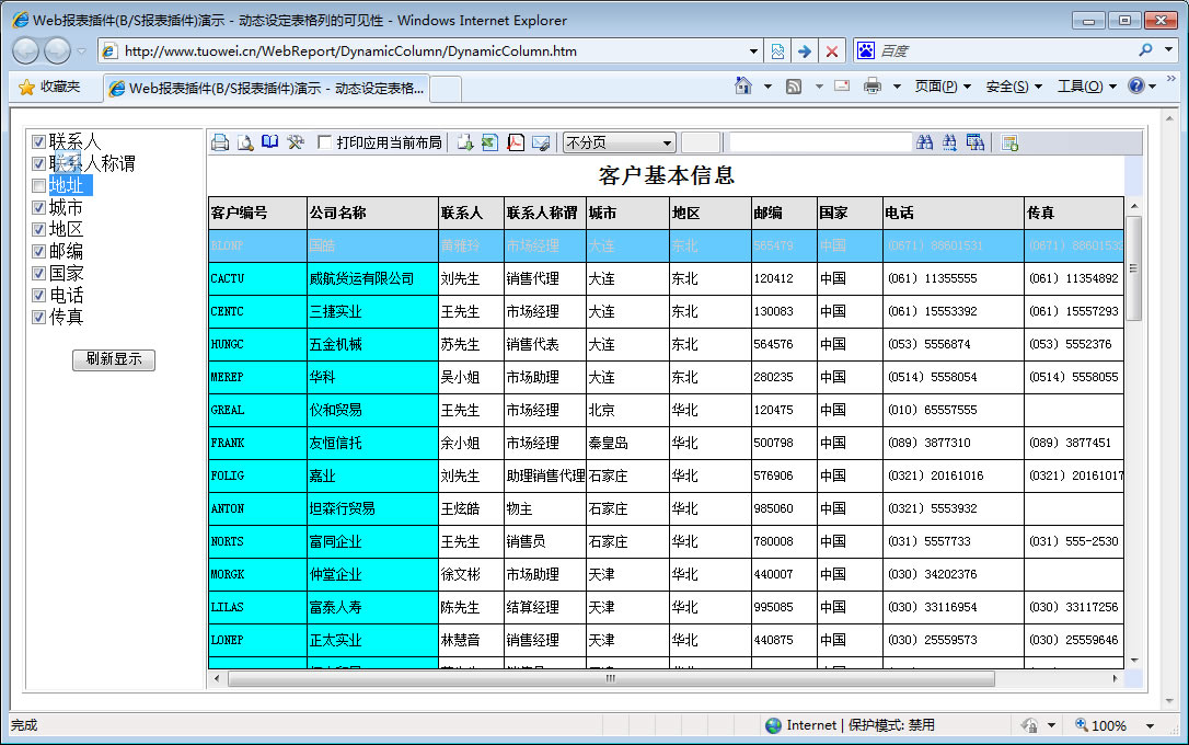 | 动态显示或隐藏表格列 | 通过参数实现列的显示与隐藏。 | ||